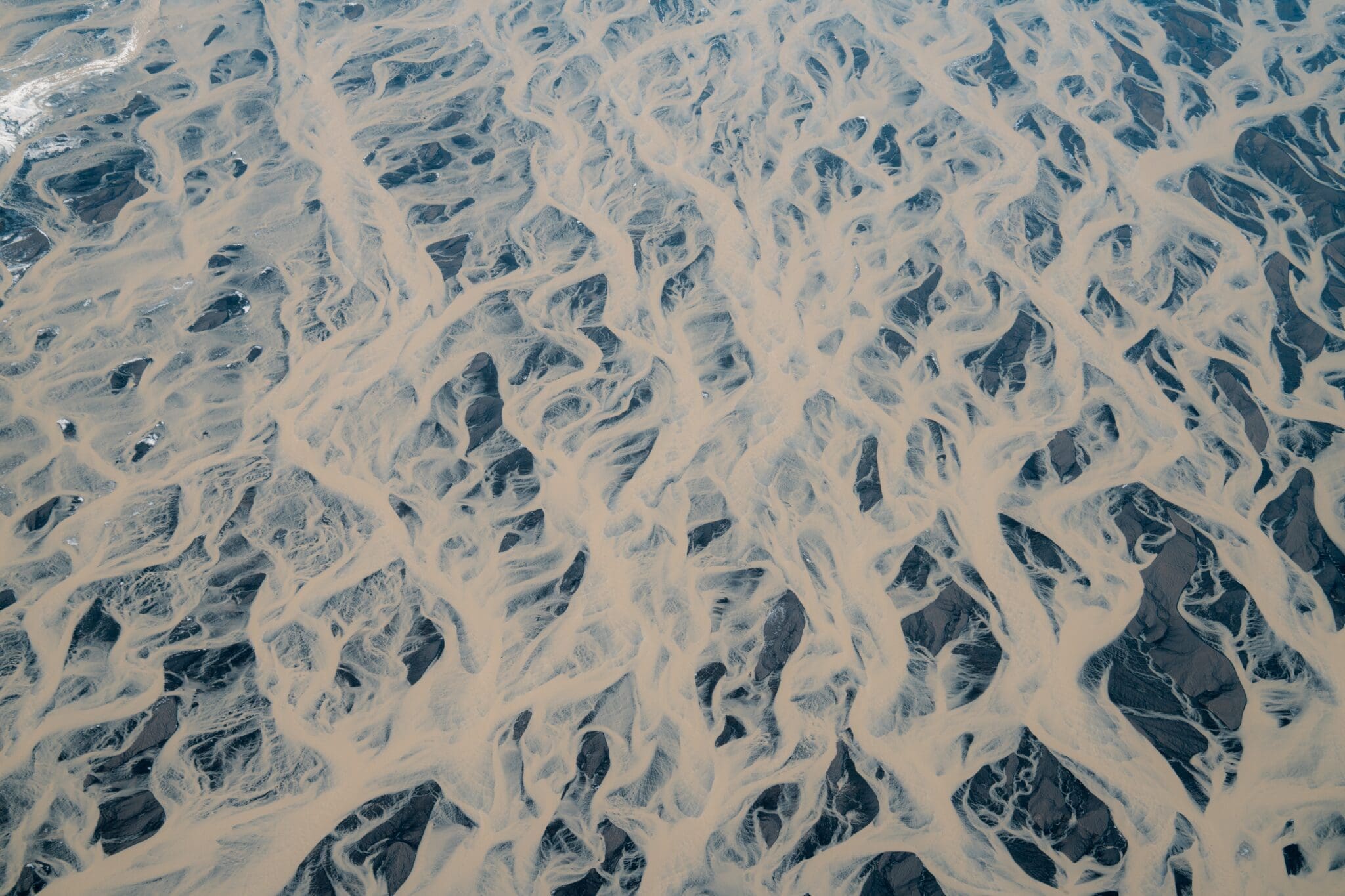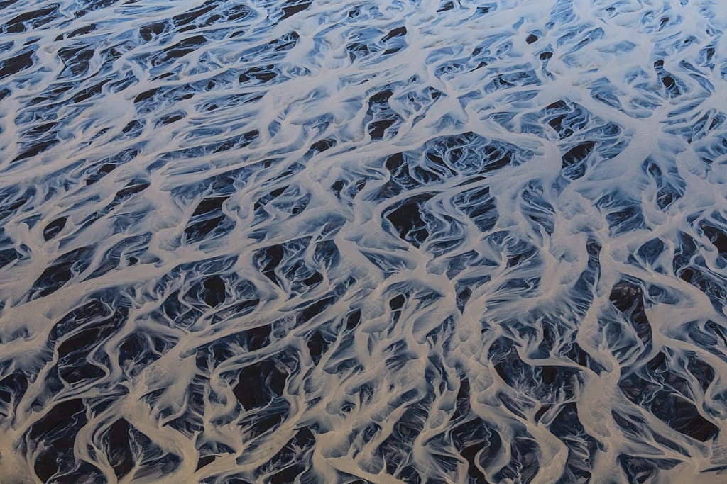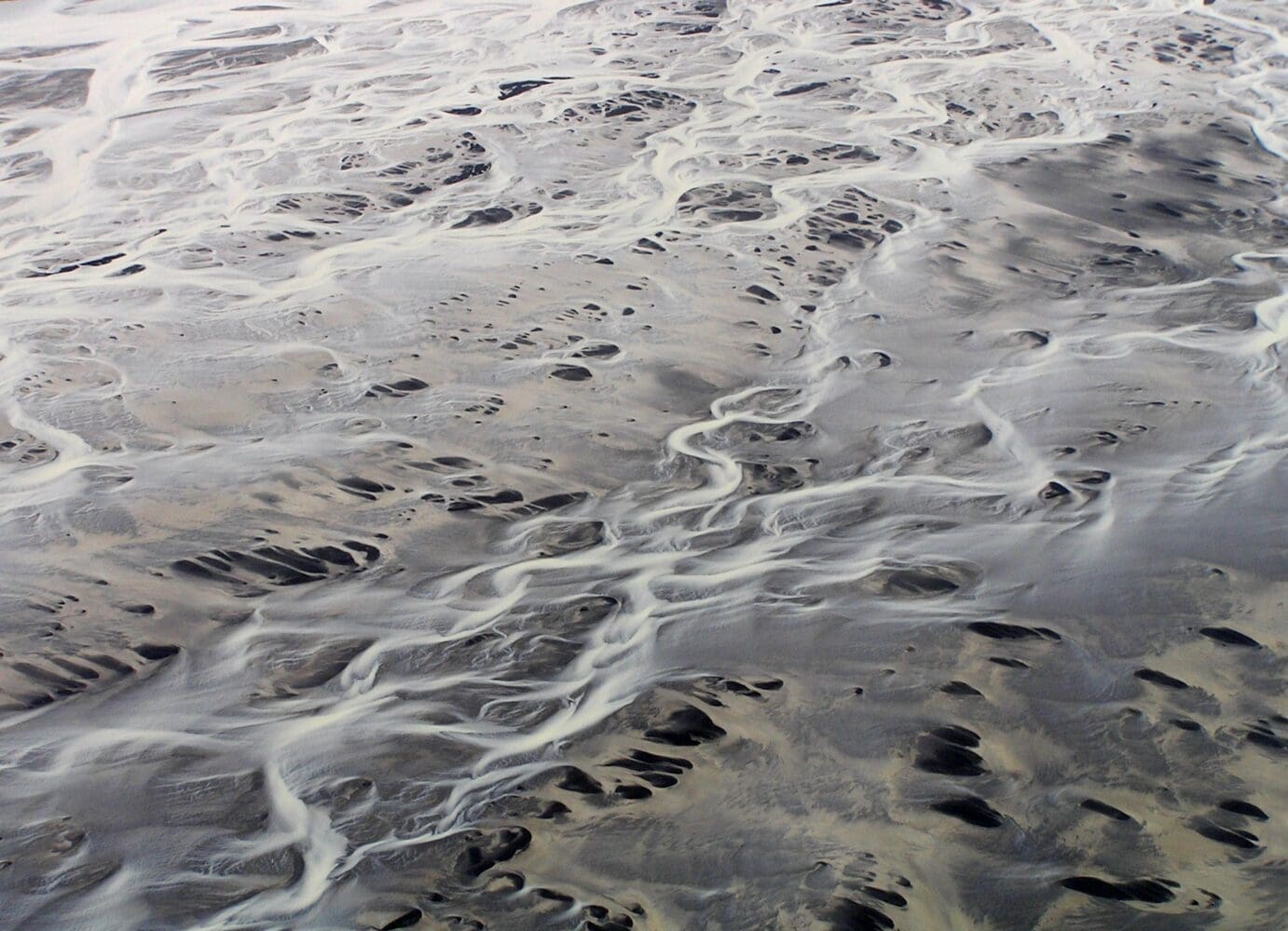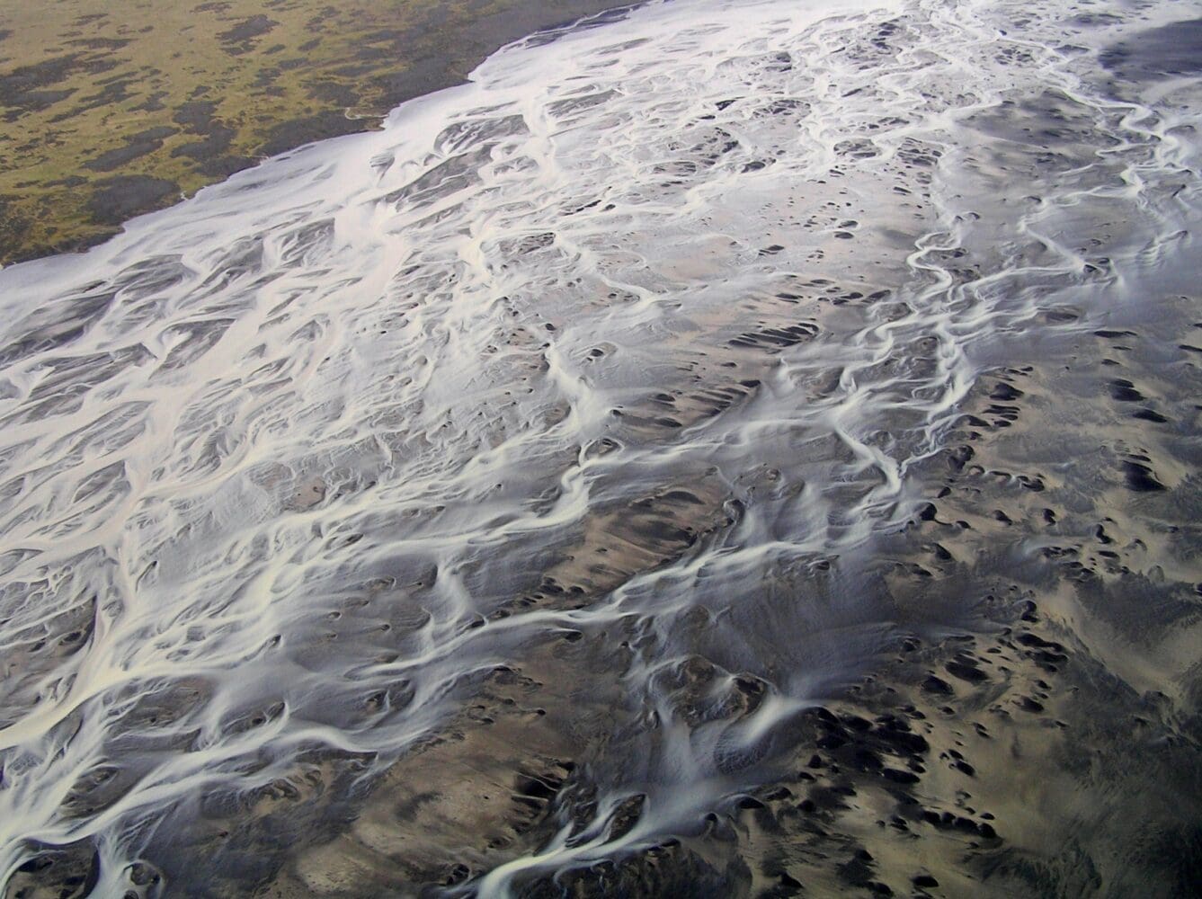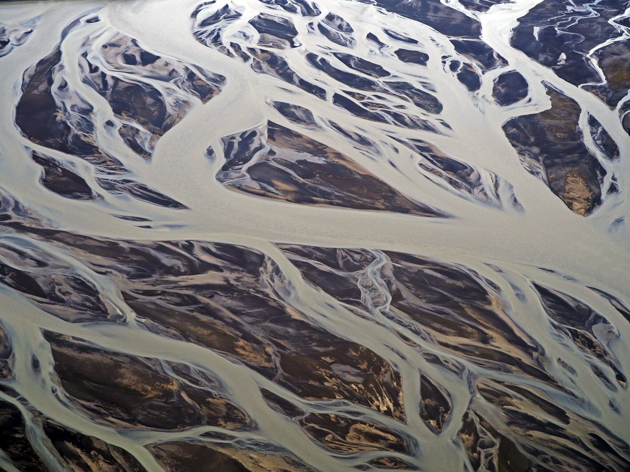 Trace the mesmerizing patterns of braided rivers as they wind their way toward the sea.