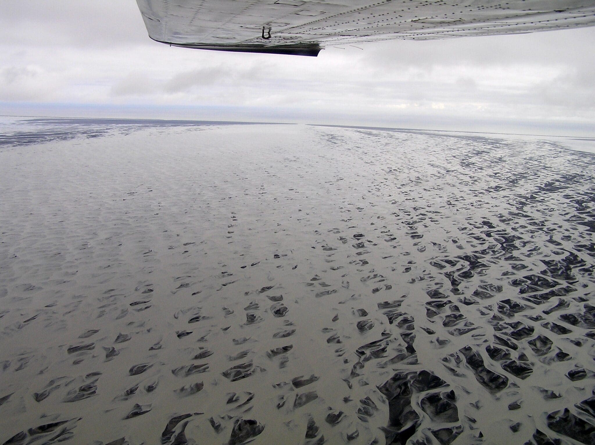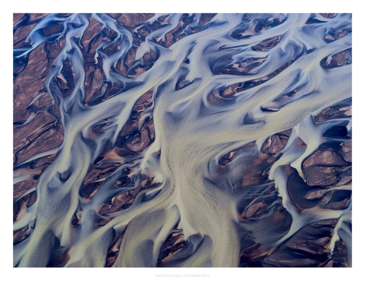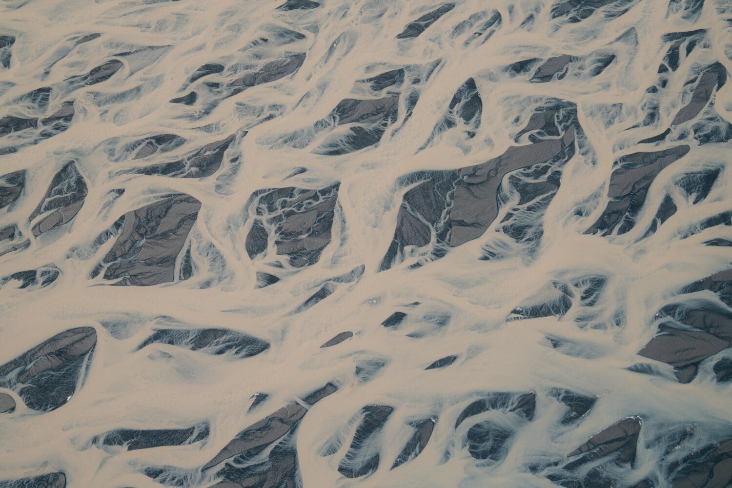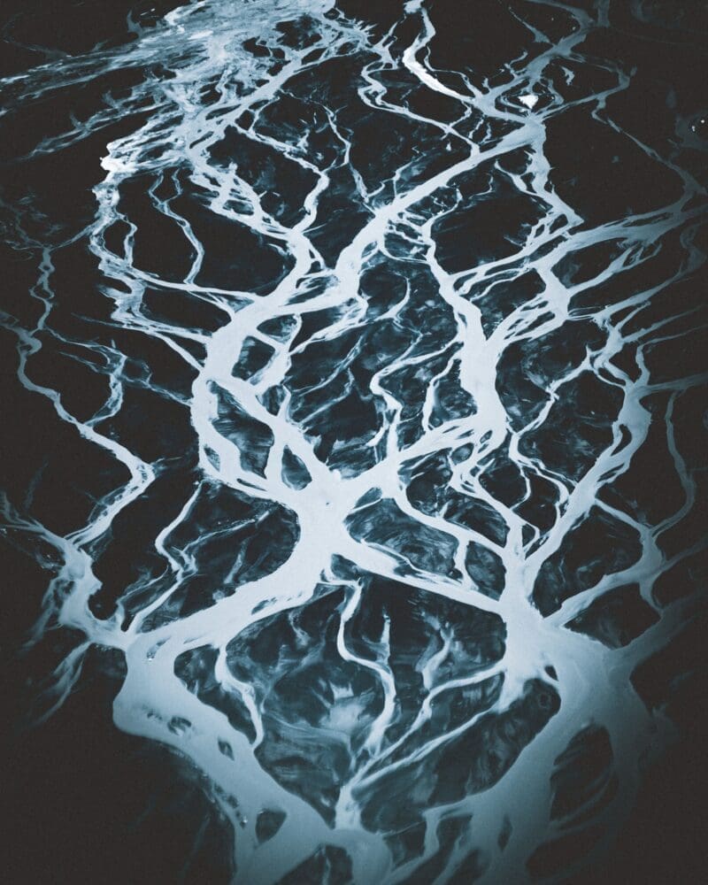 Trace the mesmerizing patterns of braided rivers as they wind their way toward the sea.