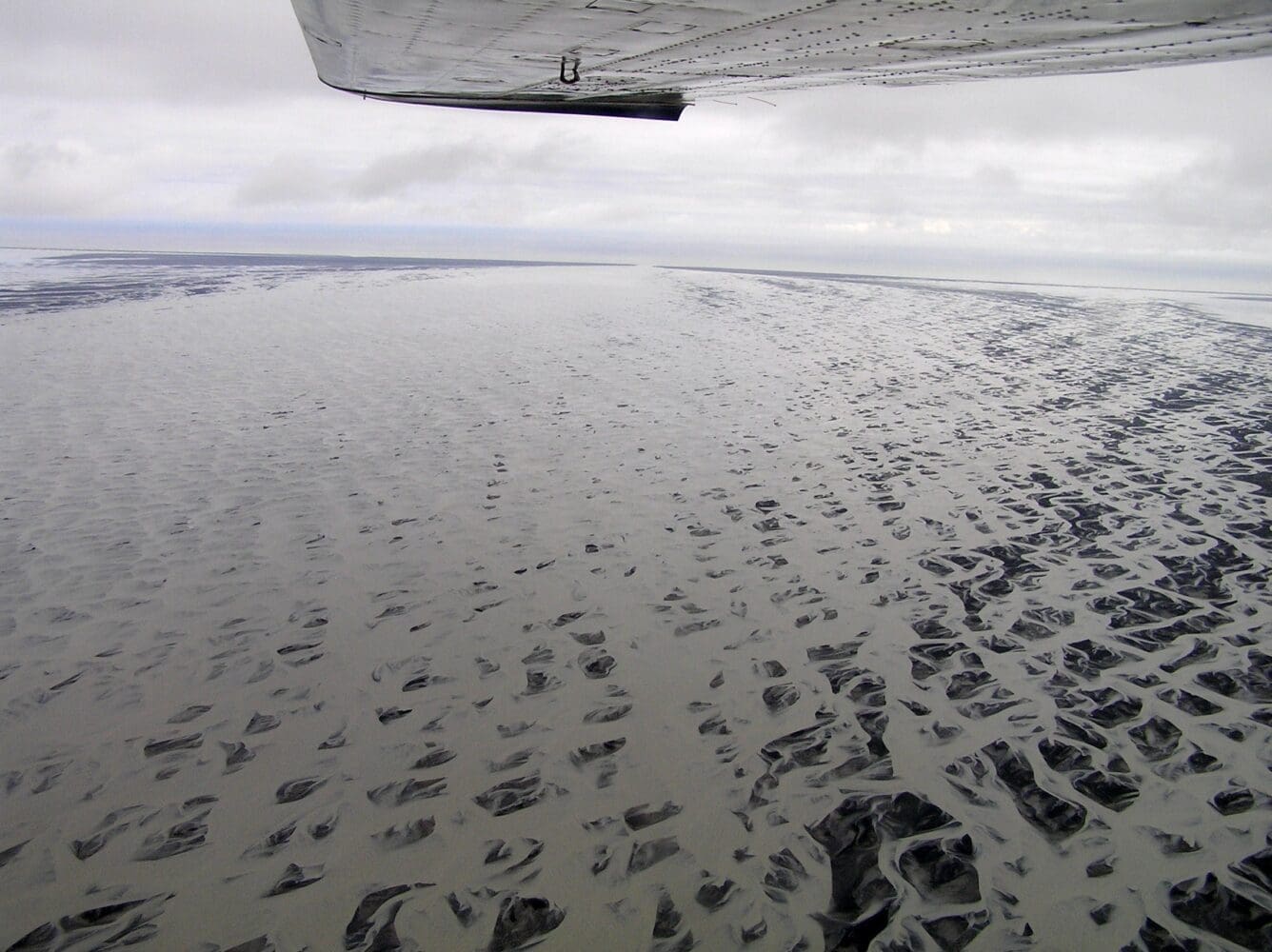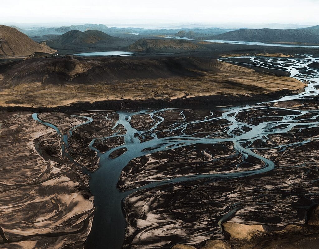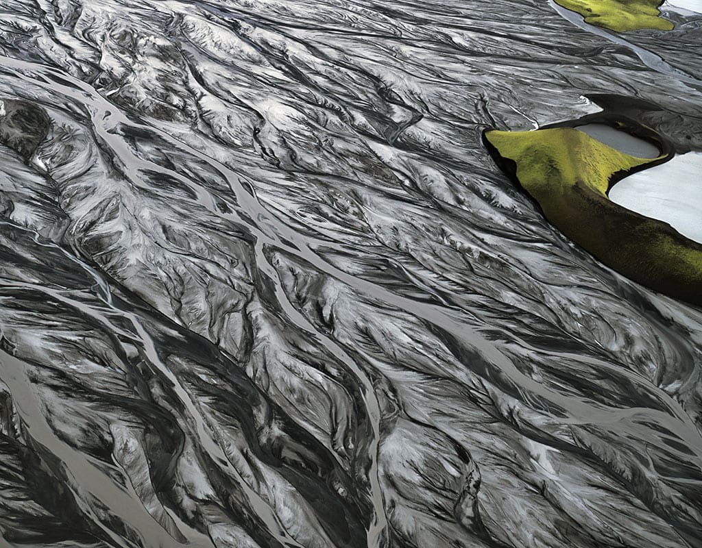 Fly over Skeiðarársandur, the world’s most extensive glacial outwash plain, shaped by volcanic eruptions and glacial floods.