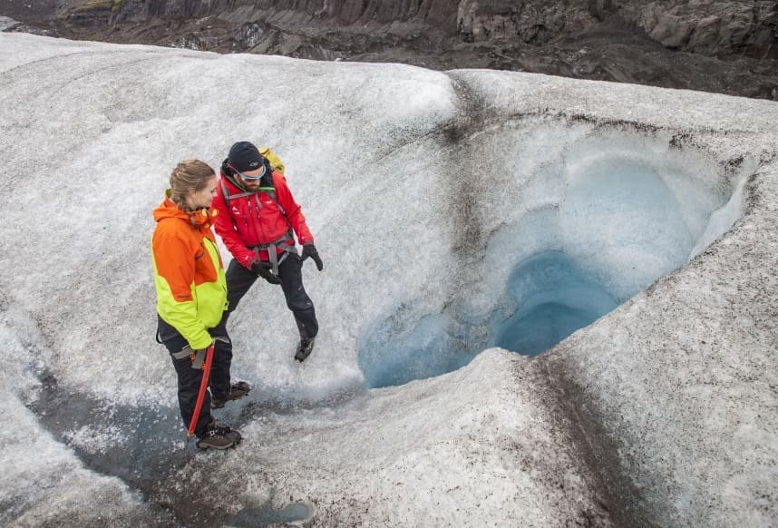 The adventure begins in Skaftafell where you will meet your experienced glacier guide. He will prepare you for the excursion with all the necessary glacier equipment. After a short ride on the Glacier Bus, you reach the glacier. You will walk through a wonderland of glacial ice sculptures, meandering through ice ridges and the deep crevasses of the glacier. On the way, your guide will teach you all about the history and geology of the Icelandic glaciers.