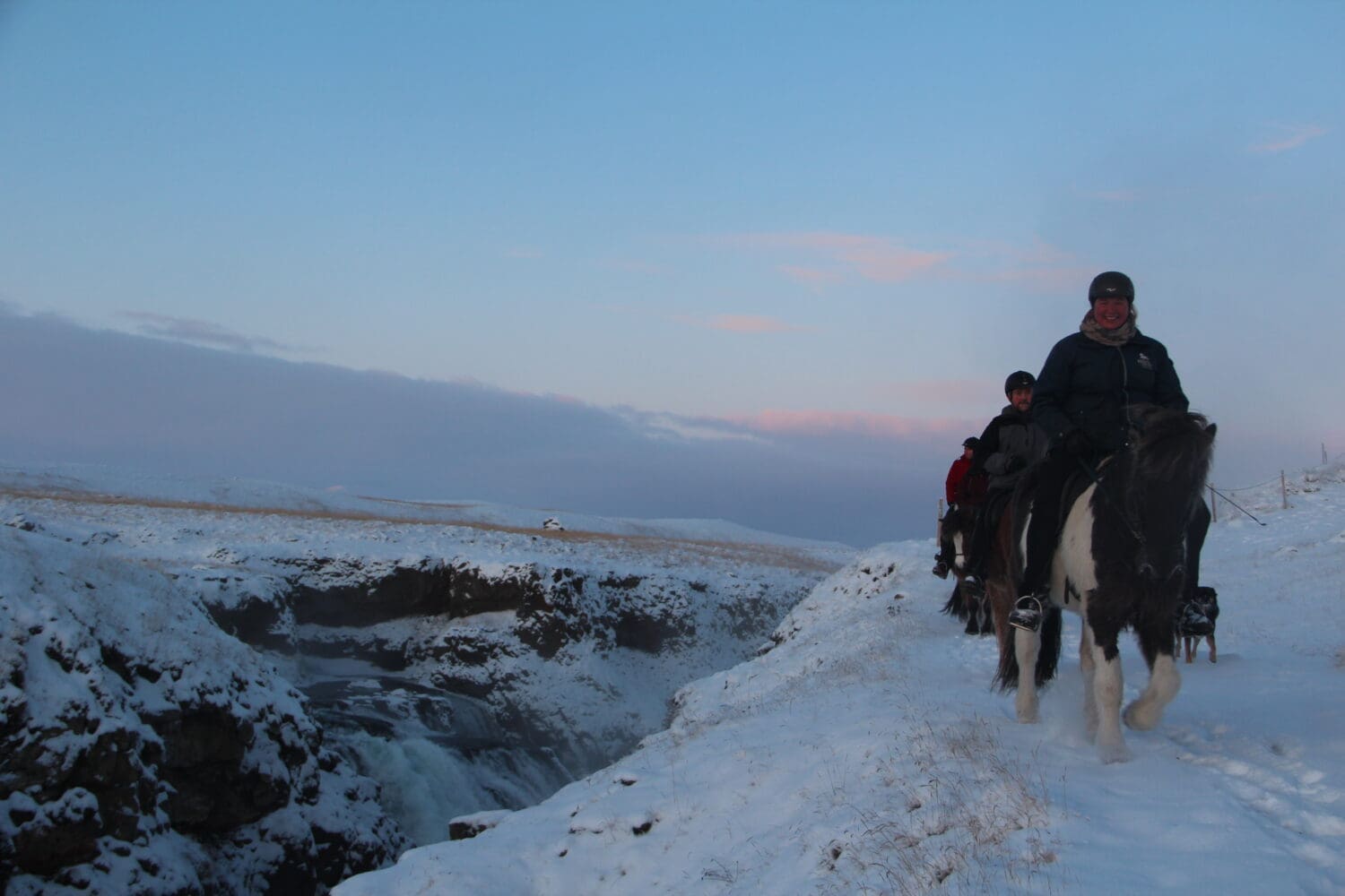 Make a pit-stop at Hestasport and come along for a short ride towards the waterfall Reykjafoss on horseback. Enjoy the fantastic scenery of the mountain panorama of Skagafjörður and watch the water rushing down the steps into the canyon Brandgil. Take some beautiful pictures between the ears of your furry companion that will bring you safely on the edge of the steep canyon and you will bring home some memorable expressions from Iceland.