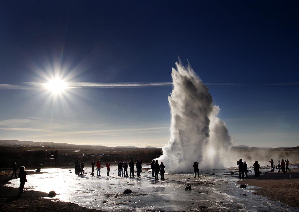 Prepárate para quedar maravillado mientras nos aventuramos en la cautivadora zona geotérmica de Geysir. Seremos testigos del emocionante espectáculo de Strokkur, un géiser que entra en erupción cada cinco minutos y lanza un poderoso chorro de vapor y agua hacia el cielo. Sumérgete en la naturaleza y captura momentos inolvidables.