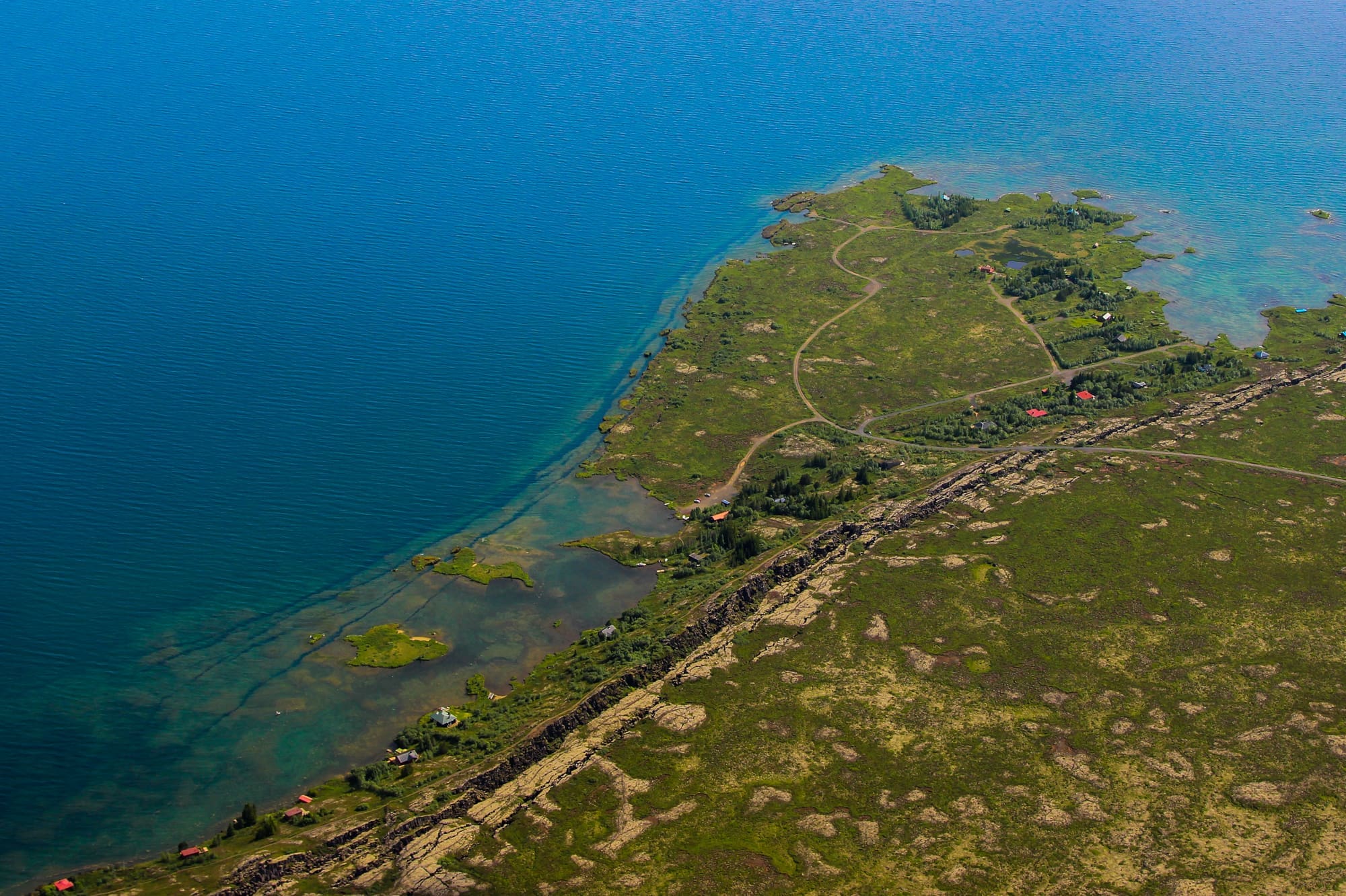 We will head out to the volcano Hengill where Hellisheiði and Nesjavellir powerplants harness geothermal energy creating electricity for the whole capital. There among the steam columns we will make a short stop at a secluded geothermal area where you can take a closer look at the bubbling hot springs. On the way back we fly along the continental rift line at Þingvellir National Park where it is possible to see clearly how the country is being pulled apart.