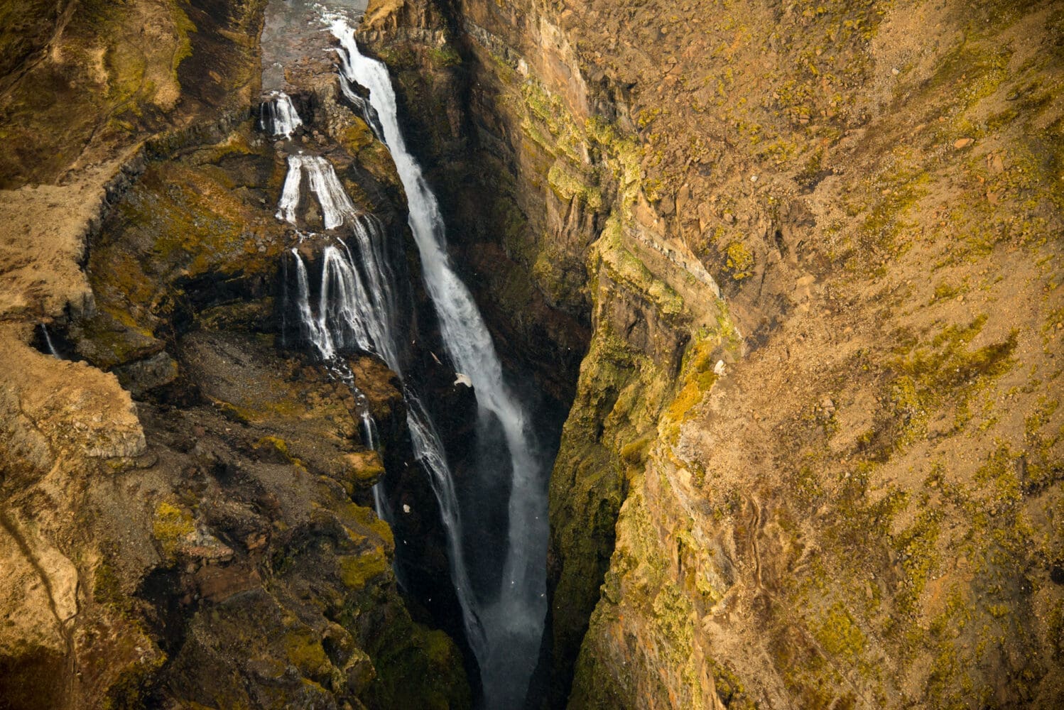 From Reykjavik we head out to Icelands highest waterfall Glymur, which hides in a deep, narrow canyon at the bottom of Hvalfjörður (Whalefjord). From there we pass by Skjaldbreiður shield volcano which last erupted 9.000 years ago forming the base of Þingvellir lake and national park. Following the Continental Rift line through the national park you will see deep cracks and crevices due tectonic plates pulling apart.