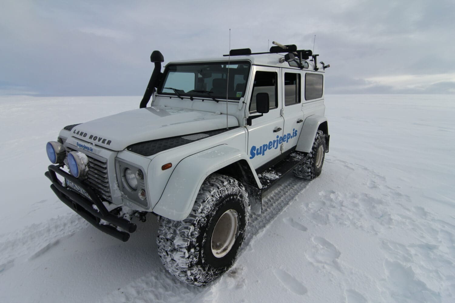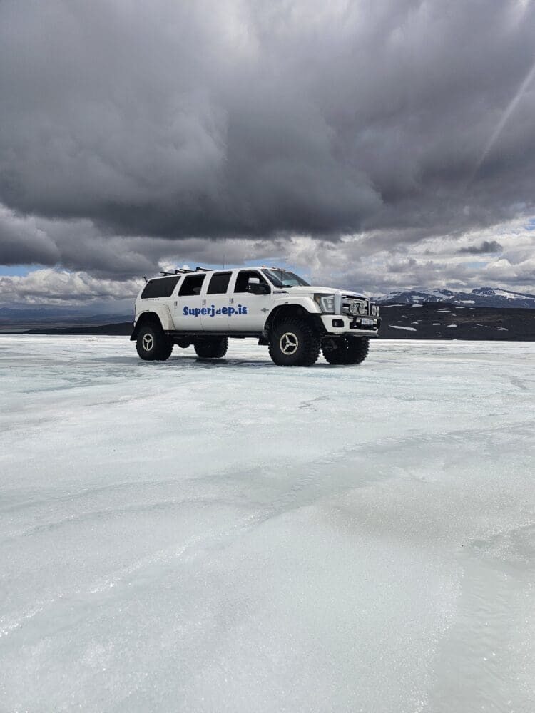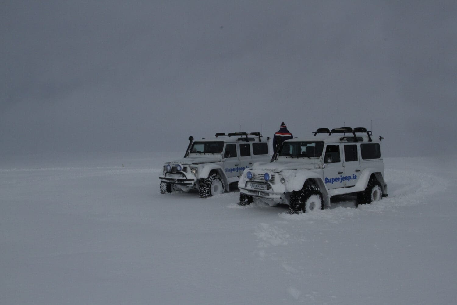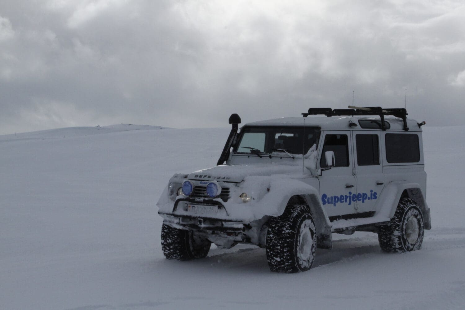 The final stop of the Golden Circle takes you to Gullfoss waterfall, which many consider to be the queen of Icelandic waterfalls, as it is both high and mighty and stumbles dramatically in a deep gorge. We then have a lunch break at Gullfoss Café, before trying out our super Jeep vehicles off road: the ride will take you across glaciers and highlands, splashing through rivers and the rough terrain. You will enjoy the landscape from your super Jeep while occasionally stopping next incredible sights.