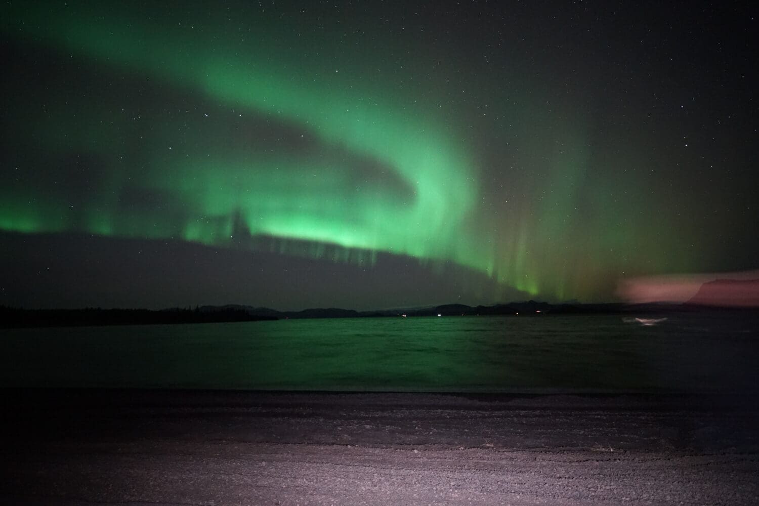 The elders say that the harsher the night‘s frost, the more intense the colours will be. Swirling and swaying overhead, displays are usually greenish-yellow but white, red and pink lights can also appear.