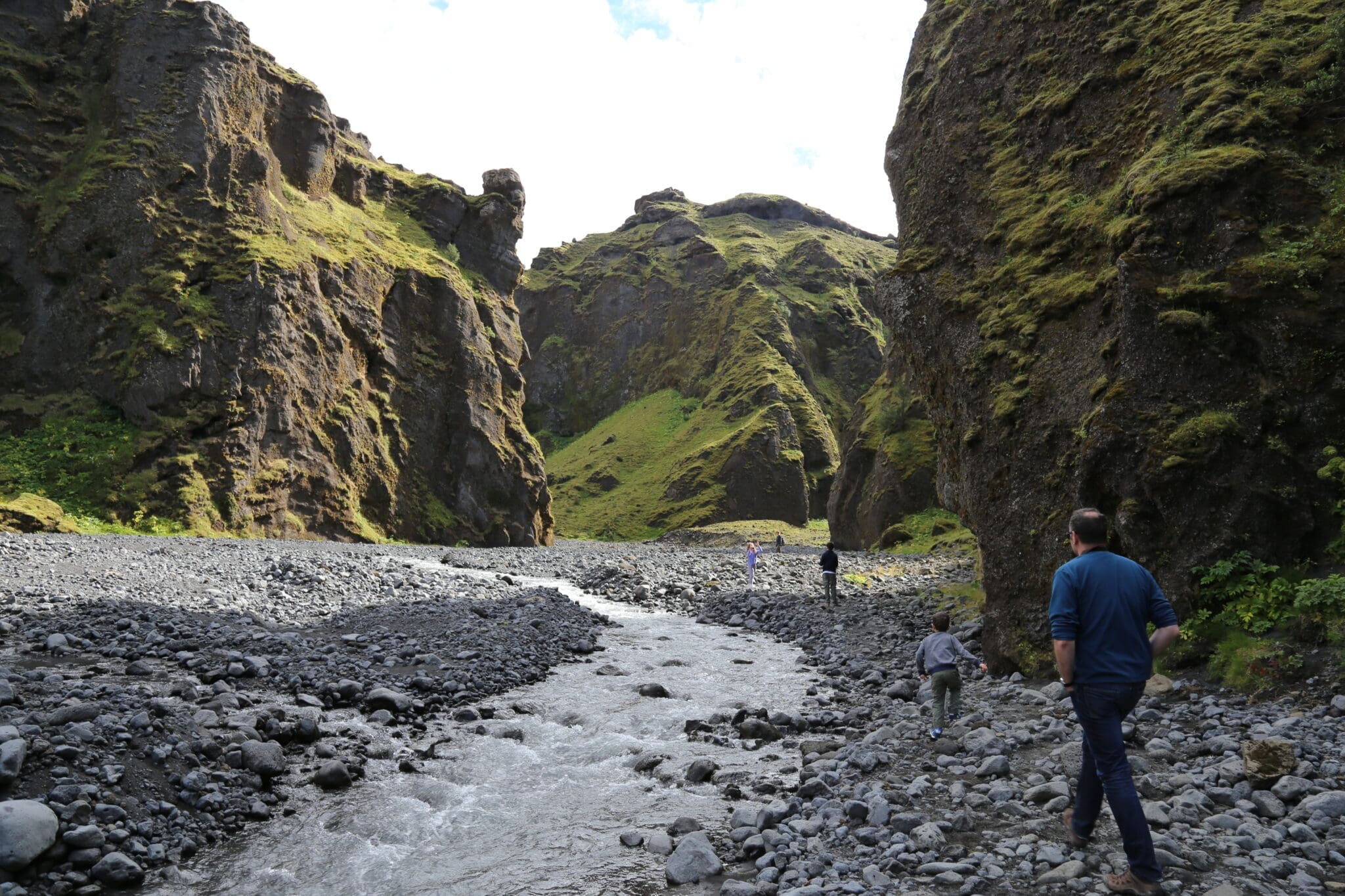 The elegant Seljalandsfoss waterfall is unique, you can actually walk behind the plummeting stream without getting (too) wet, for a unique viewing angle. After a stop there, we head on to the legendary Thórsmörk valley, nestled in between three glaciers, with a stop at the Gígjökull glacier further up in the valley.
