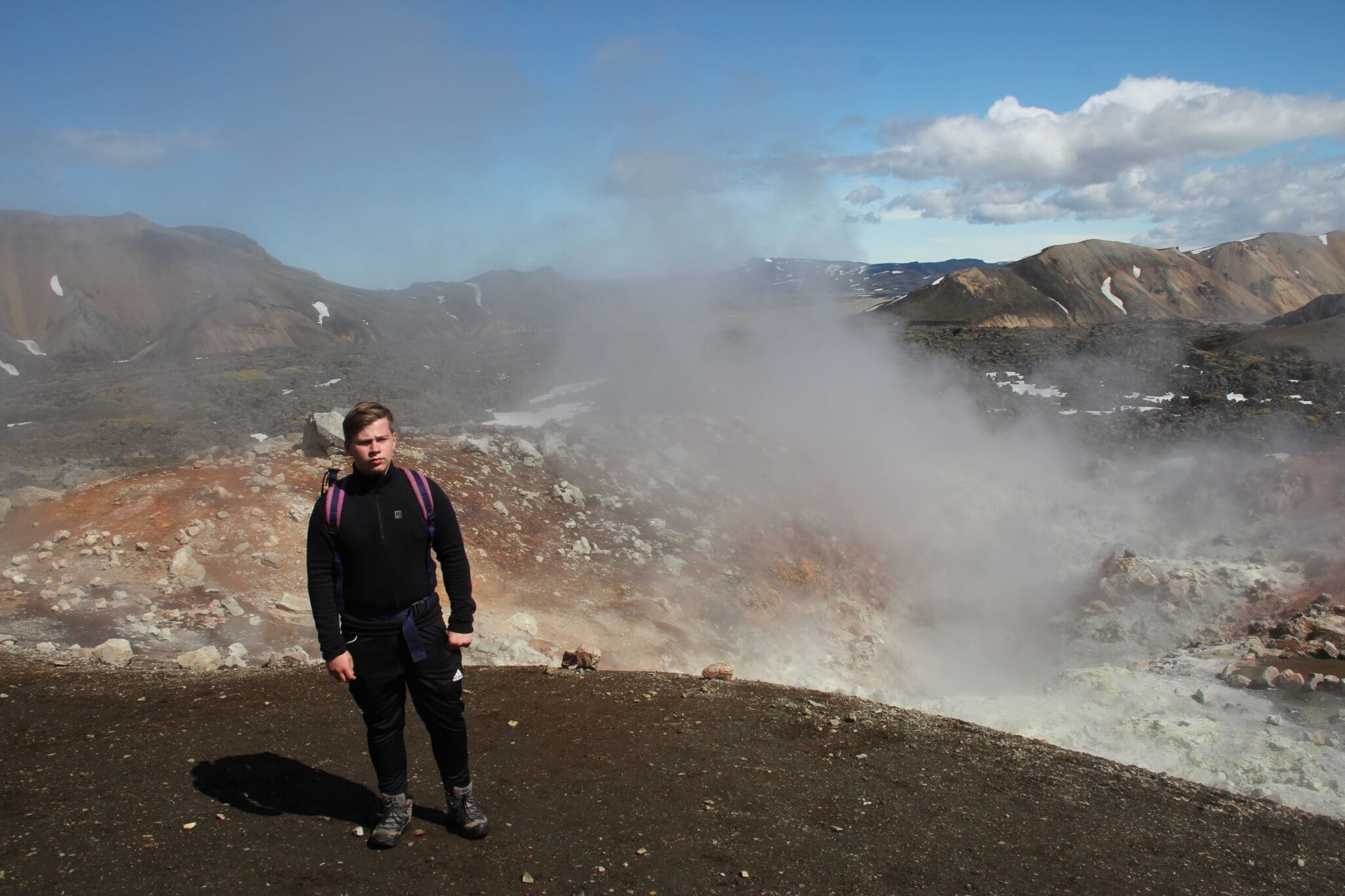 Our guide will offer a tour through the Laugahraun Lava to the mountain Brennisteinsalda and back to Landmannalaugar through the Grænagil Canyon. This trek is 4,5 km and not technically complex. We will observe bubbling rivers, geothermal hot springs, beautiful lava, and colorful mountains.