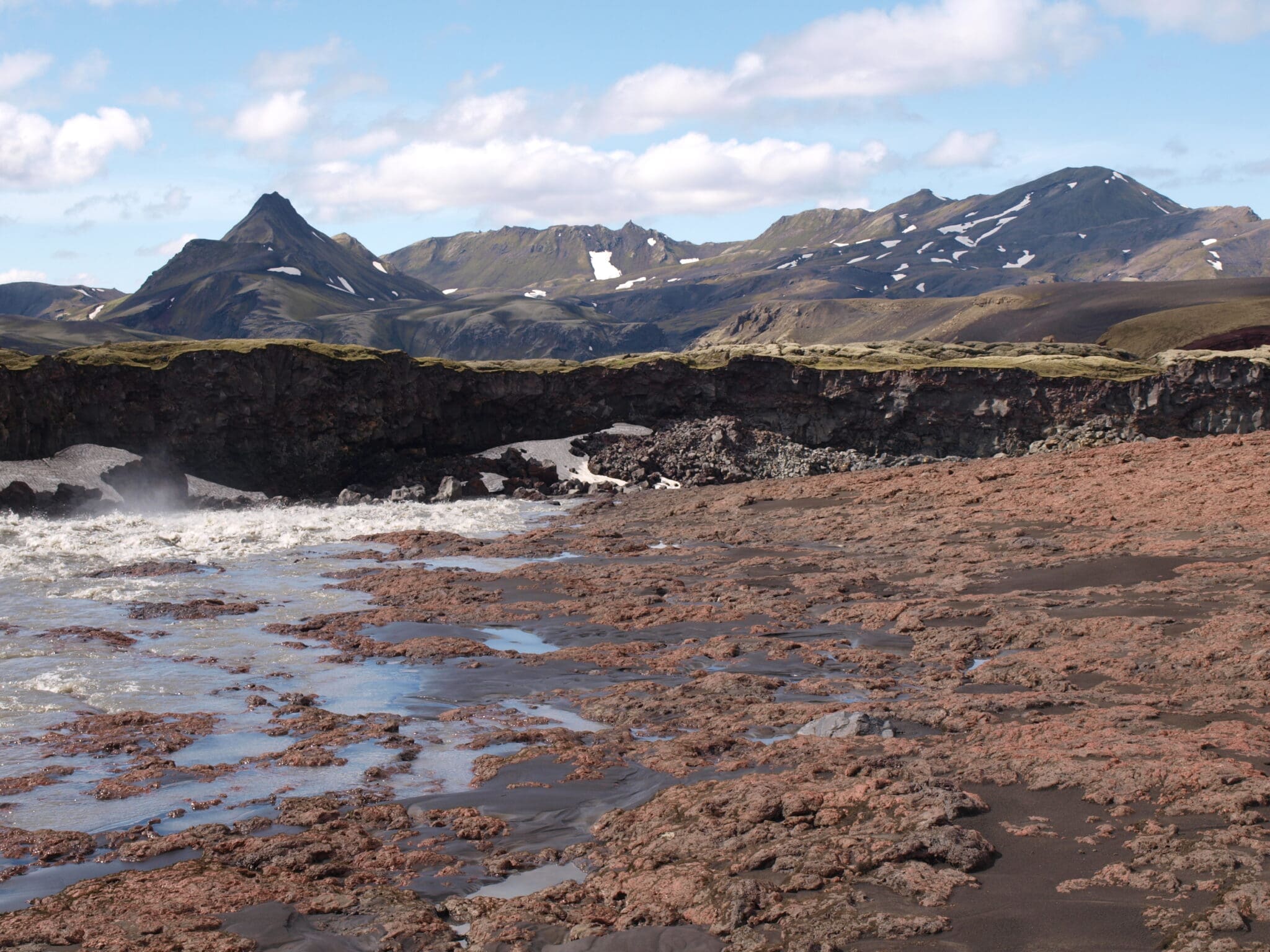 Eldgjá is a fissure created by eruptions that took place in the year 934. The fissure is 60 km long and forms a canyon that extends from the mountain Gjátindur to the glacier Mýrdalsjökull in the southeast. We will observe the fissure and take a good look at the waterfall Ófærufoss.