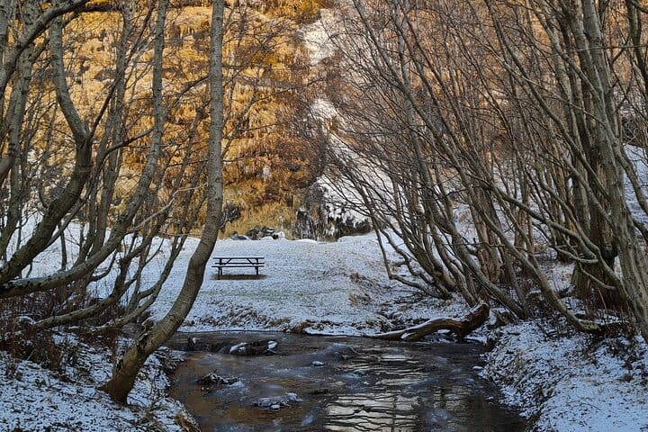 Our first stop is a hidden gem on the south coast of Iceland. A place that not many people know about and we can enjoy the peaceful atmosphere of this place. The waterfall is hidden in a rare Icelandic forest surrounded by small caves, which are worth exploring. A beautiful place that is sometimes used as a wedding location.