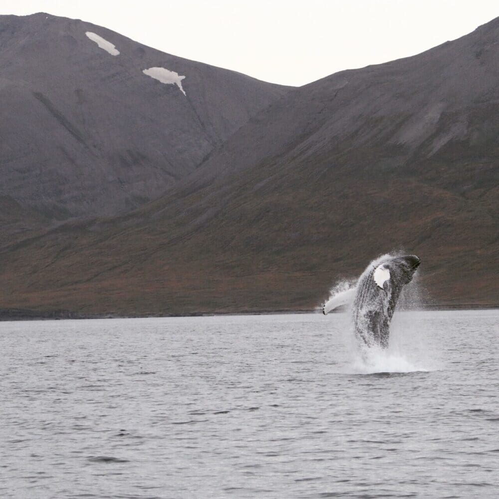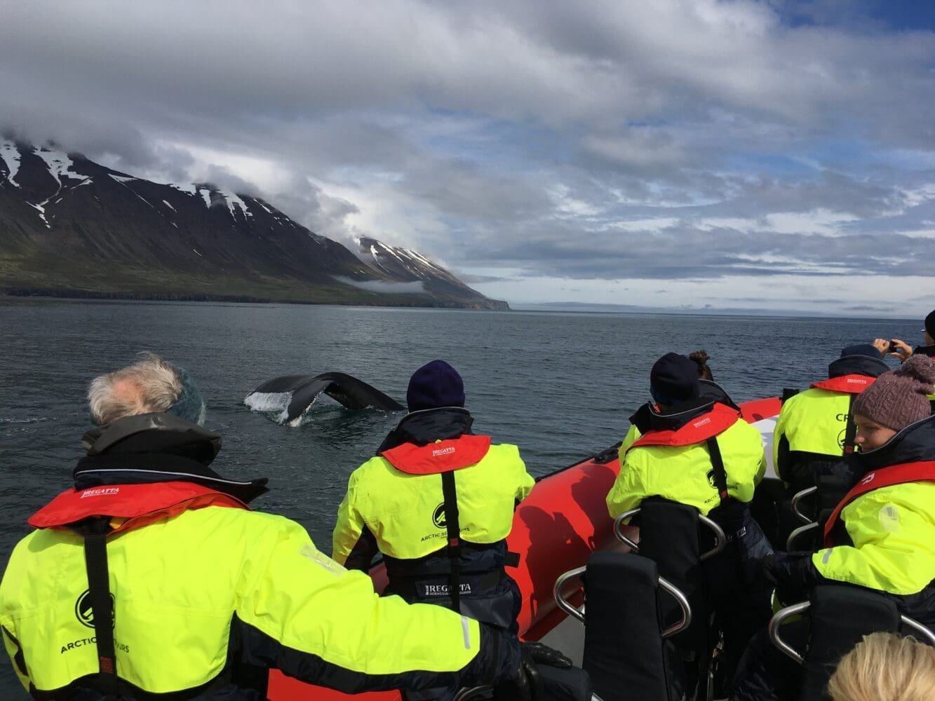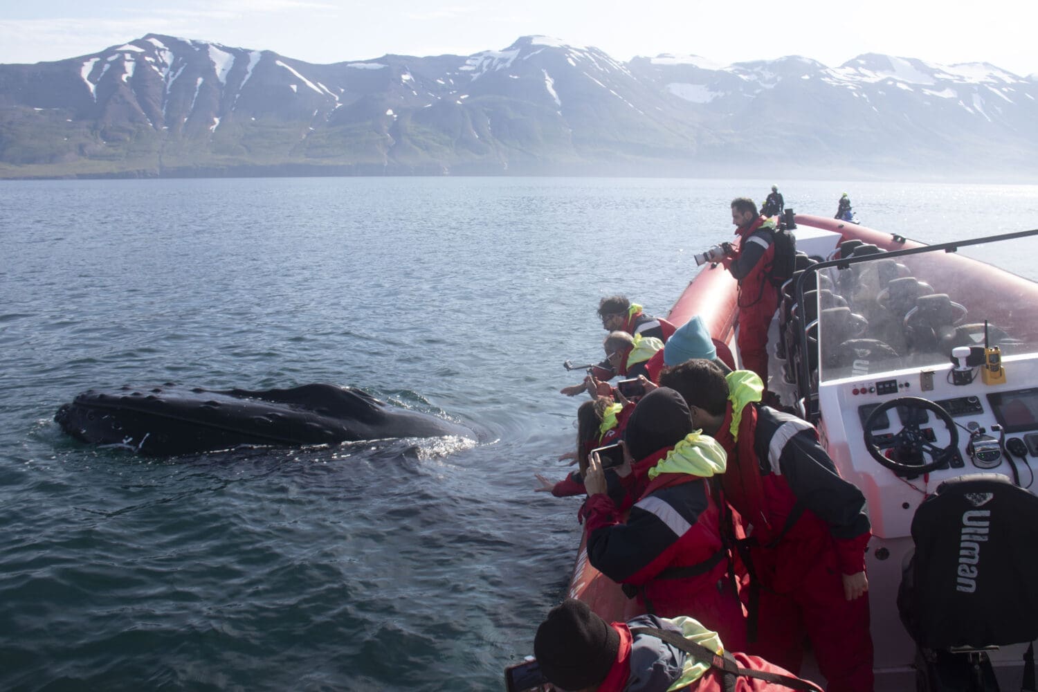 The Whale Watching & Puffin Express is a fast and safe one and a half hour RIB boat or speed boat tour that takes place within the majestic mountains and in the picturesque landscape of Eyjafjordur in North Iceland. The speed gives us an excellent opportunity to go further and sail through a wider area. In one hour we could go from Dalvik to Akureyri or almost to Grimsey, which lies on the Arctic Circle. On the way, we are almost guaranteed to see whales!