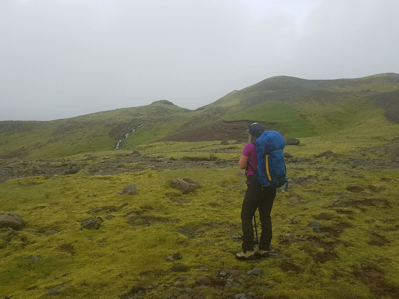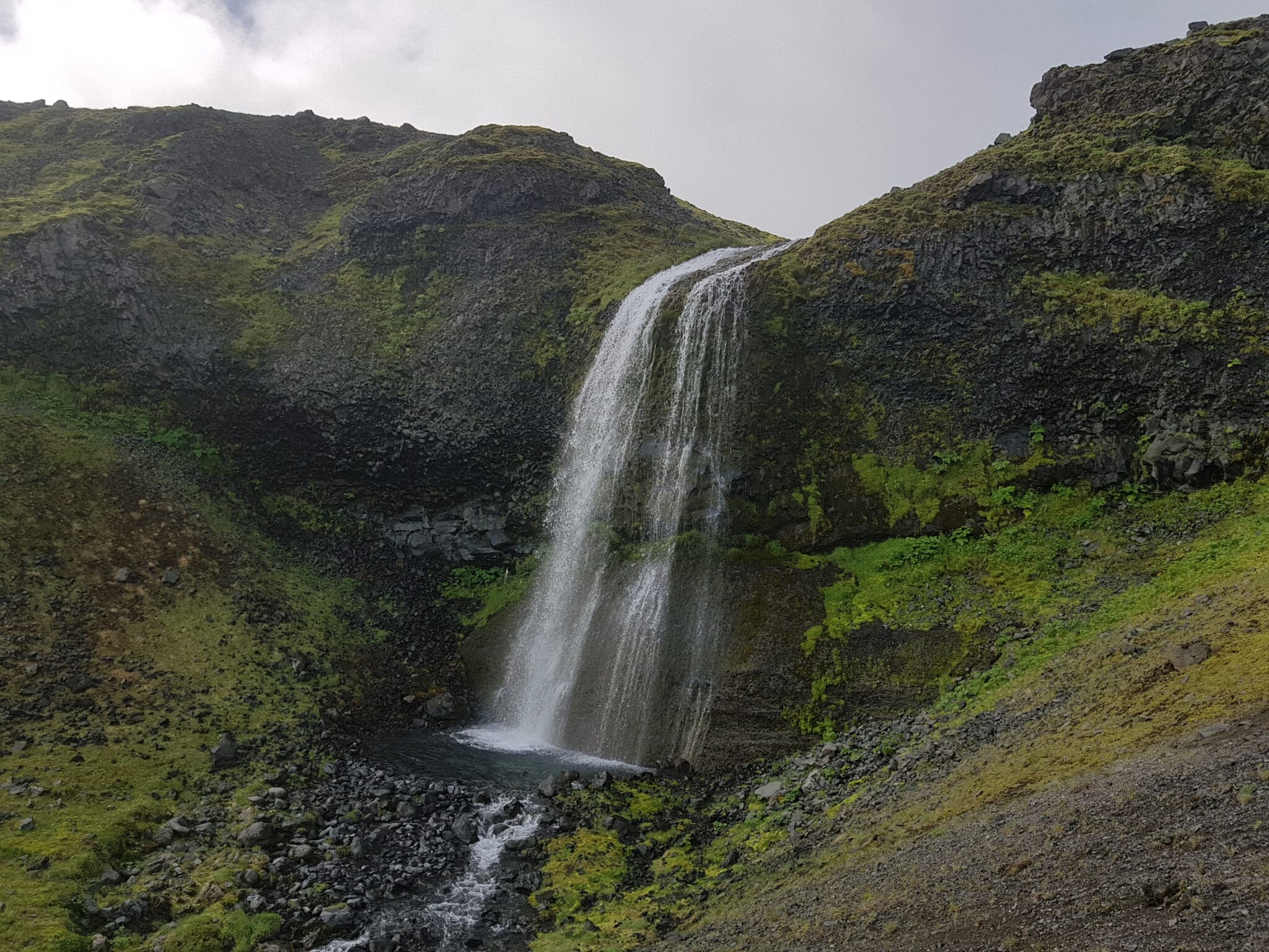 Starting from Seljavallalaug (the old swimming pool) we are going to give you some glacier gear that you need later. The hike starts by going up to the small mountain and follows an old trek, mostly gravel and moss. The beginning of the hike is steep but after every hill there is a small flat place to rest. The best part about this hike is that you don’t need to bring a lot of water with you due to small water streams on the way.