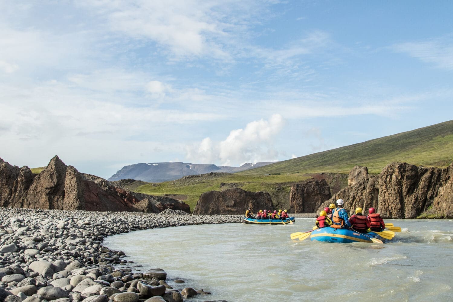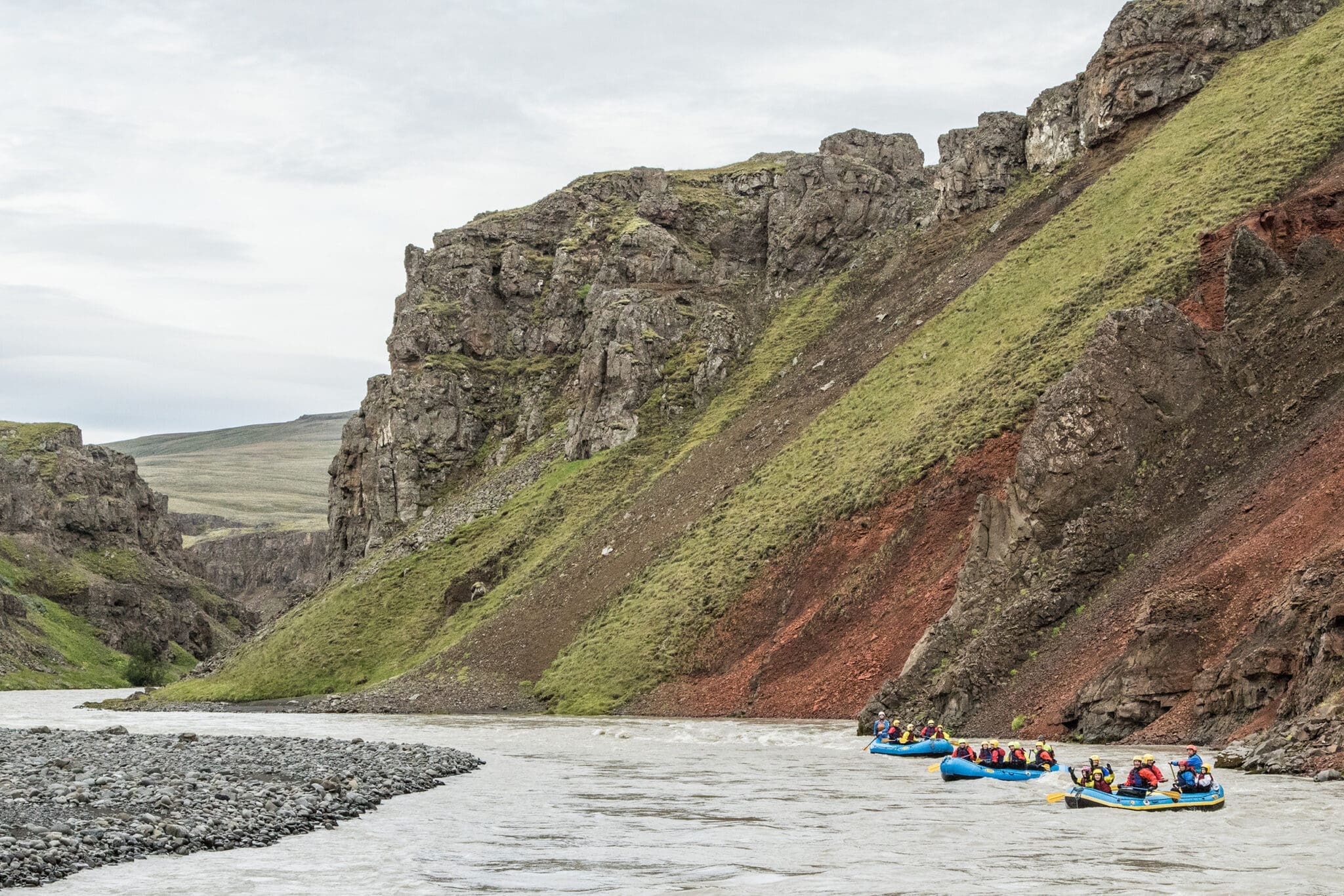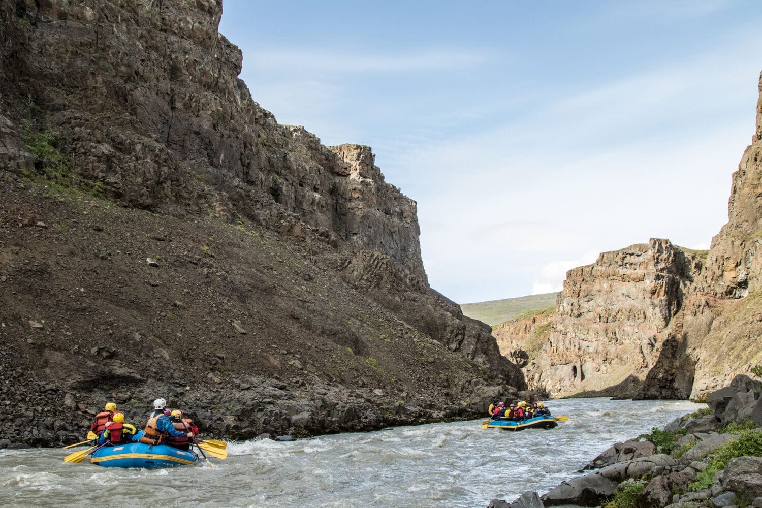 Even though we call this a "family" trip, it's not just for grandpa and the little guys! This is a fun and relatively gentle trip that is suitable for everybody out there, but if your idea of rafting is to hit big waves and feed your inner adrenaline junkie, this is not where that happens. If you're after action and more excitement, my crazy friend, then our WHITEWATER ACTION trip is probably what you're looking for! On this West Glacial River trip, fun and scenery swirl around you to deliver an unforgettable rafting adventure in Iceland! Featuring steaming riverside hot springs and magnificent canyon landscapes, this gentle rafting tour offers everyone from the novice rafter to the whole family an opportunity to pick up a paddle and explore Iceland's stunning river wilderness. As you negotiate the gentle rapids through the twists and bends of this towering gorge, enjoy the opportunity to sample some riverside hot cocoa from nature’s natural kettle! You may well find yourself in a friendly water fight, bathing in the invigorating glacial runoff, or simply kicking back and letting your troubles drift away with the meandering waters!