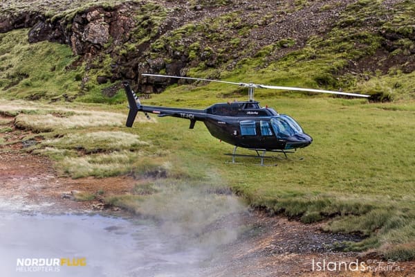 The total duration of the tour is 110-140 minutes, approx.60-80 minute guided helicopter flight and a 15 minute landing on a glacier and a 15 minute landing by a remote geothermal area on an old volcano.