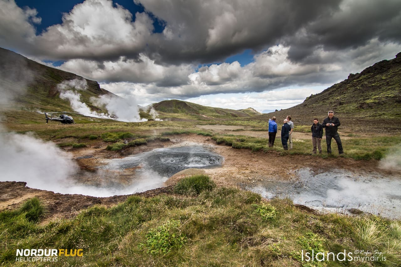 We land at a remote area to witness, smell and feel the geothermal energy with bubbling mud pits and steaming hot surface. Finally our flight path concludes with a flight over of Reykjavik to give us an aerial overview of the city.