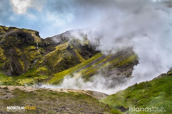 As we take to the skies to return back, you will see deep crevasses and steep ice falls that make an adventurous setting. There are no special effects like in a movie, this totally surreal setting is all real. We peek in the crater of the majestic shield volcano Skjaldbreiður and fly over the tectonic rift separating America and Europe in the historical Thingvellir National Park. We fly over geothermal hot springs and the largest geothermal power plant in the world.