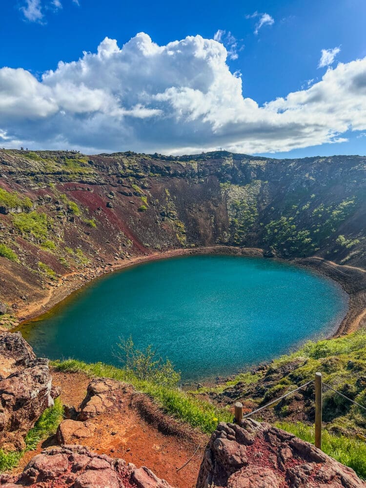 Step into Iceland’s volcanic past at Kerid, a colorful 3,000-year-old crater filled with striking turquoise water. A short walk up to the rim gives you a stunning panoramic view into the crater’s bowl. It's a stop that feels like a scene from another planet.