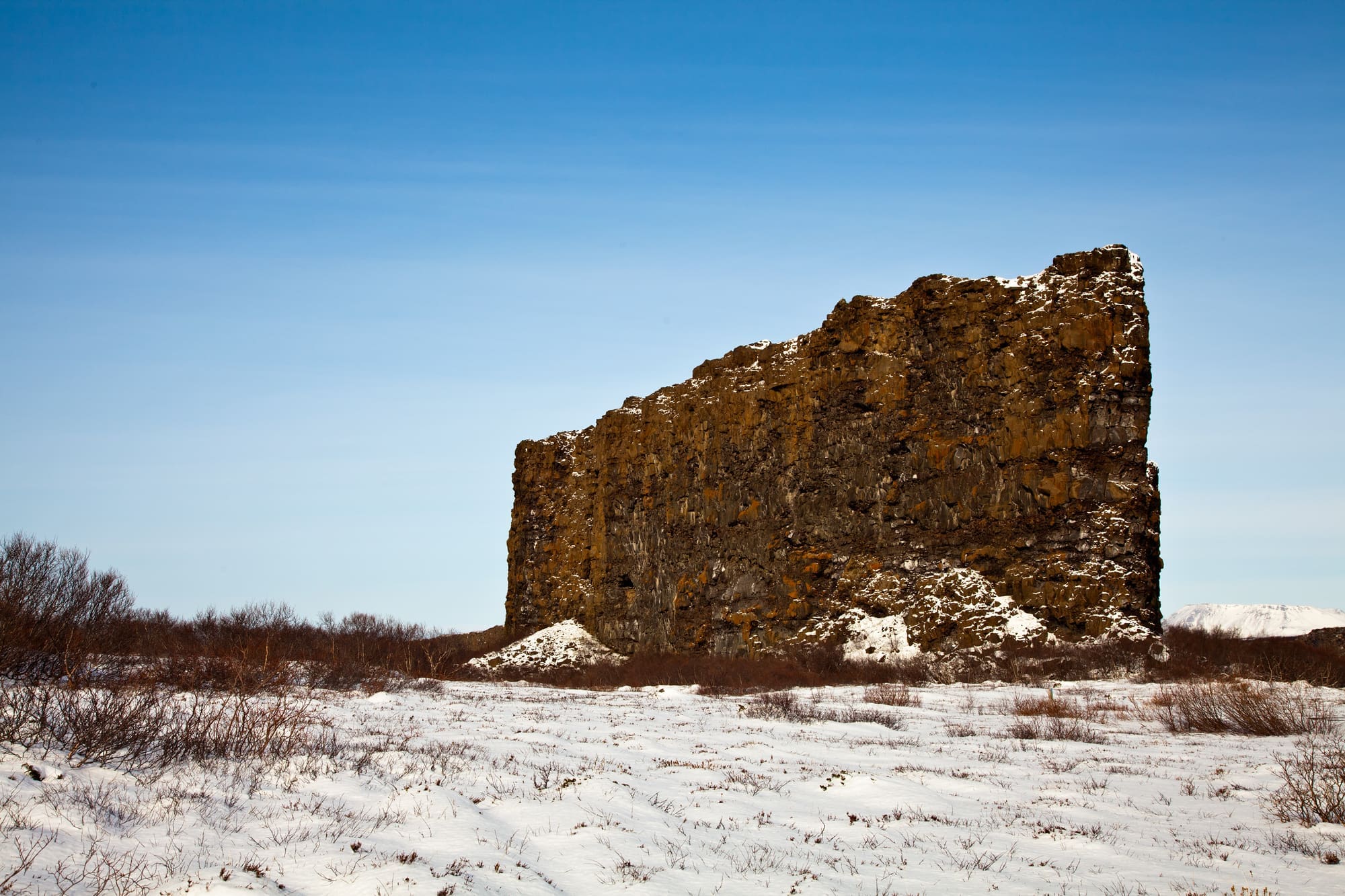 The canyon measures approximately 3,5 km in length and is over 1 km wide. For more than half of its length, the canyon is divided through the middle by a distinctive rock formation 25 meters high called Eyjan, the island. The canyon’s steep sides are formed by cliffs up to 100 metres in height. Within the canyon is a woodland of birch and willow, and the whole area is permeated with local folklore. Ásbyrgi is believed to be formed by Odin’s horse and now it is thought to be the home of the hidden people.