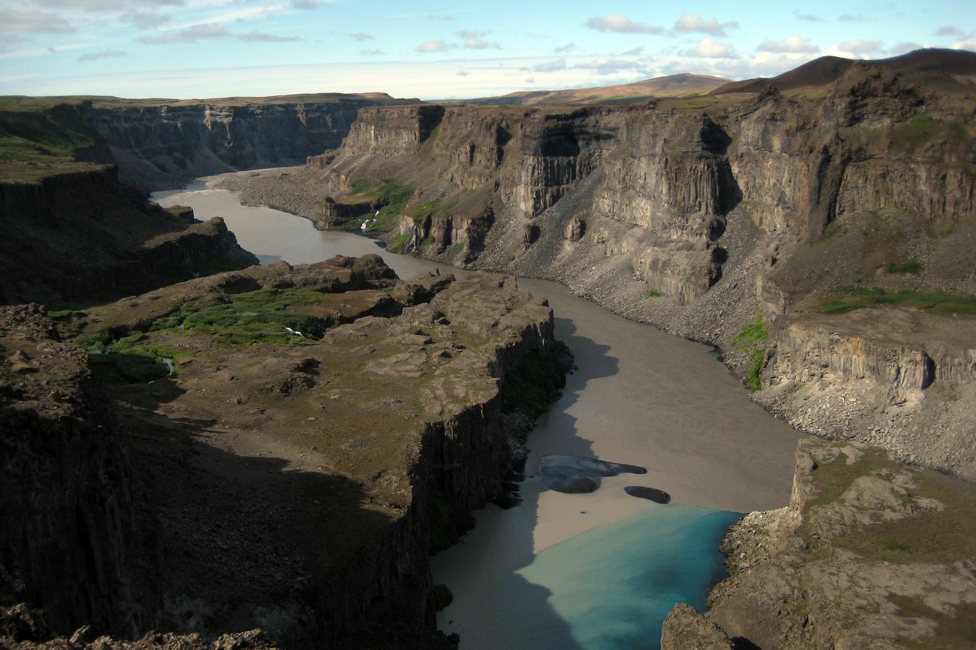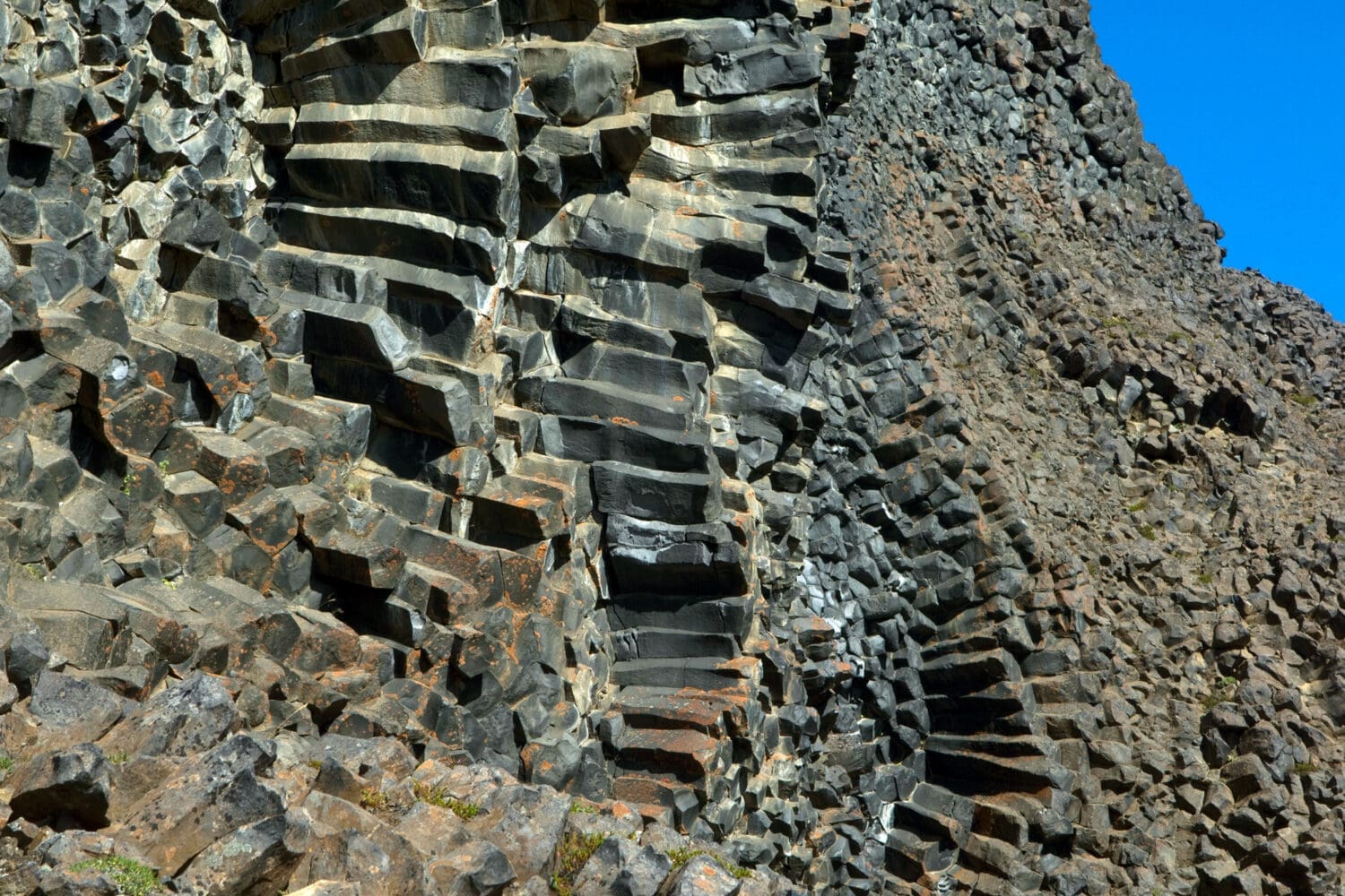 Finally, halfway between Dettifoss and Ásbyrgi, we visit Vesturdalur valley, where to find the bizarre basalt rocks of Hljóðaklettar. Here a series of vertical, horizontal and diagonal columns, formed by mysterious volcanic activity, stand over the ground and model rosettes, swirls, spirals and honeycombs.