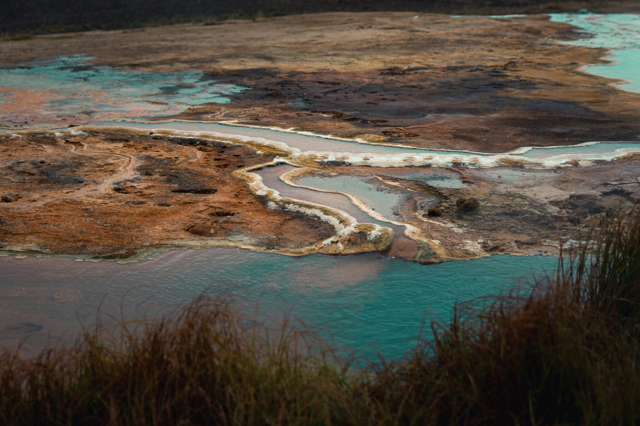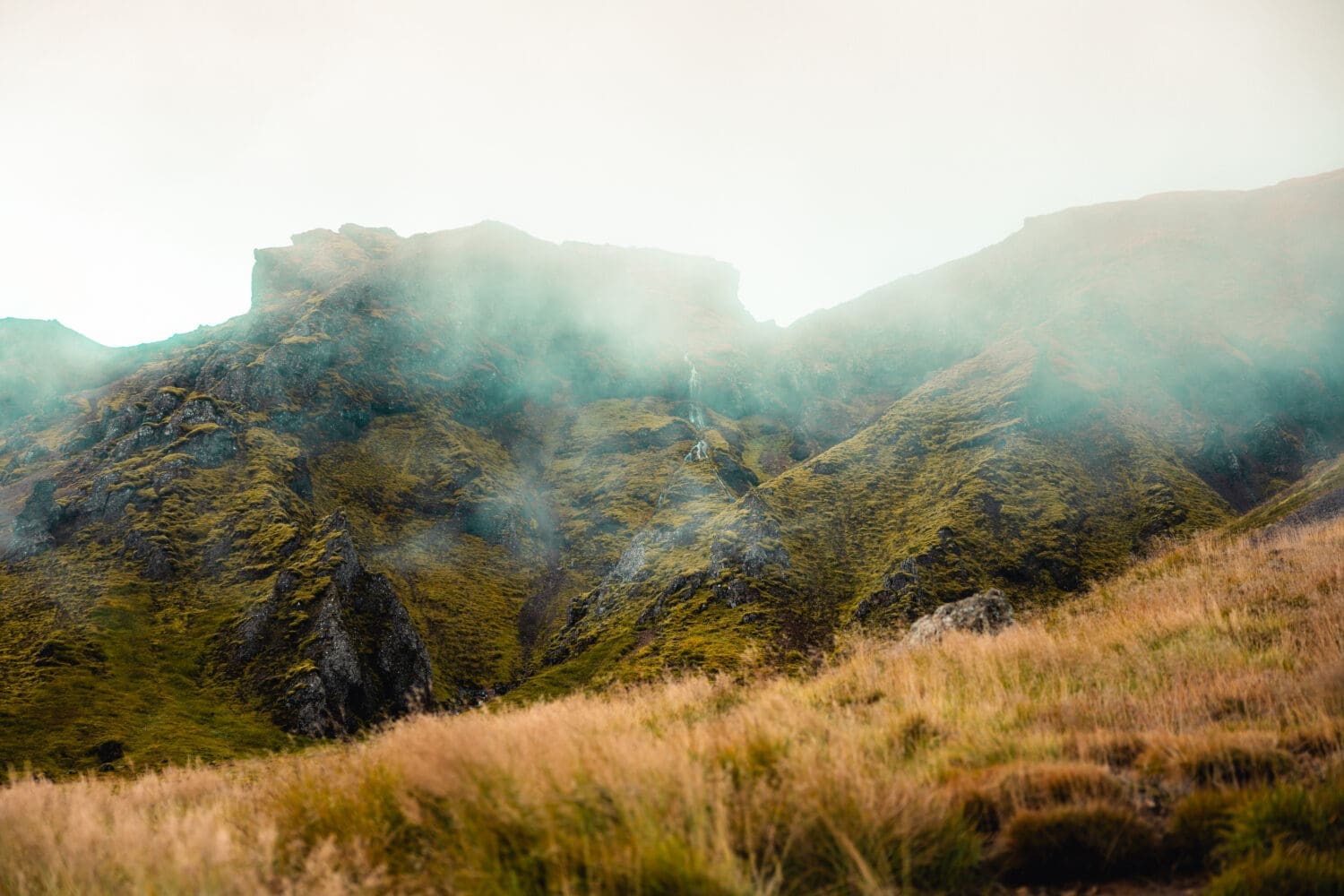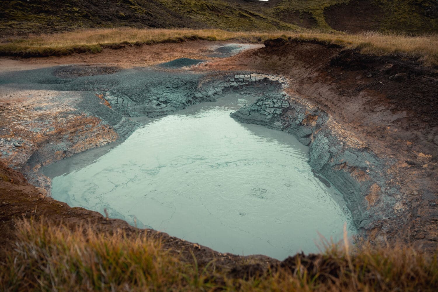 - Land in a steaming geothermal valley surrounded by peaks.