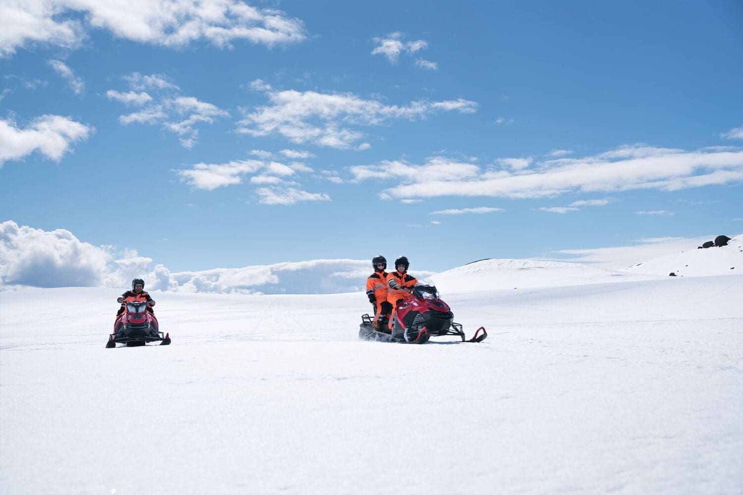 Let's talk snowmobiles – our tours are priced for two people sharing one beast of a snowmobile. But hey, if you're flying solo or just want the whole ride to yourself, you can upgrade to your very own snowmobile for an extra 10.000 ISK per person.