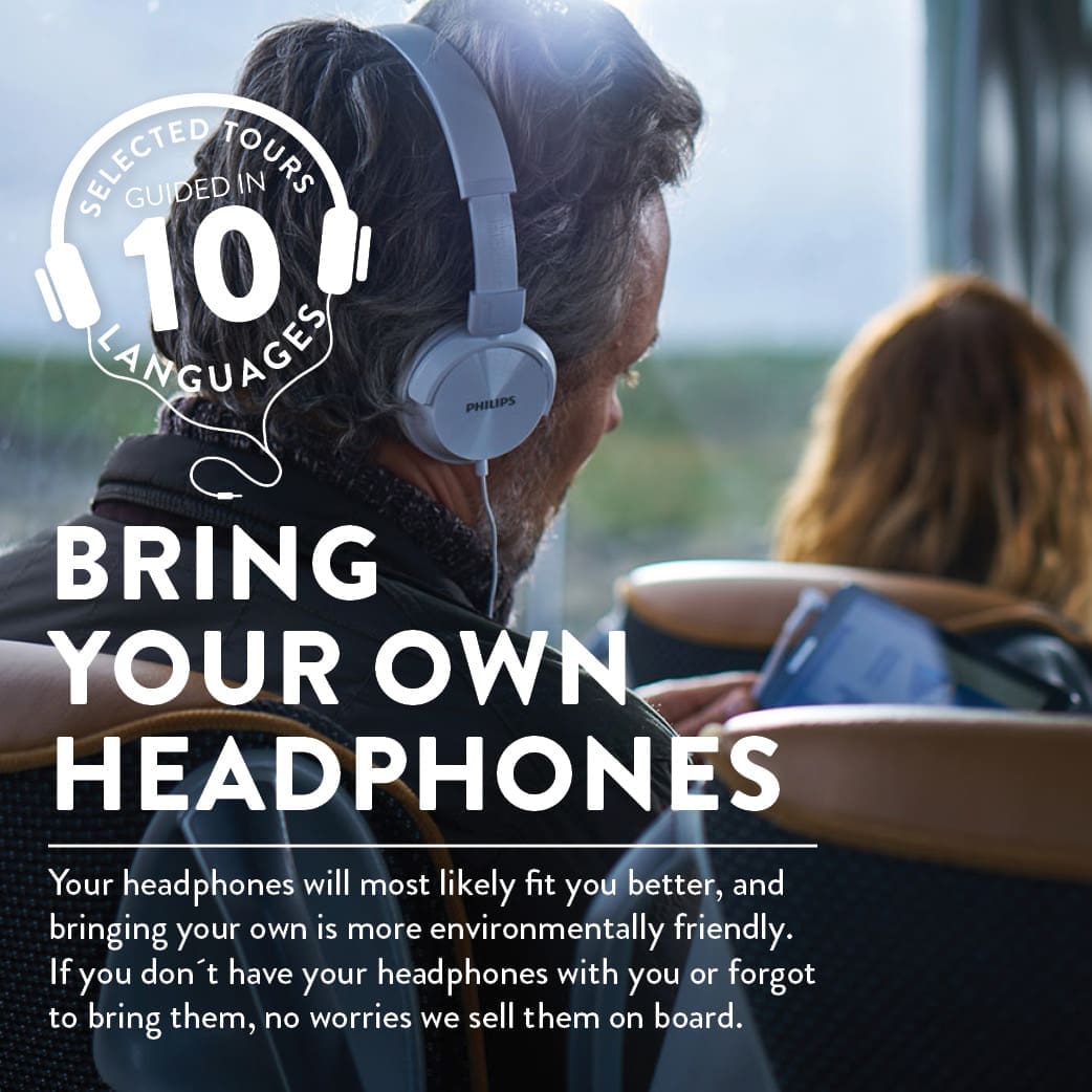 In-Bus-Audio-Guide: Bring your own headphones. Otherwise we sell earphones on the bus.