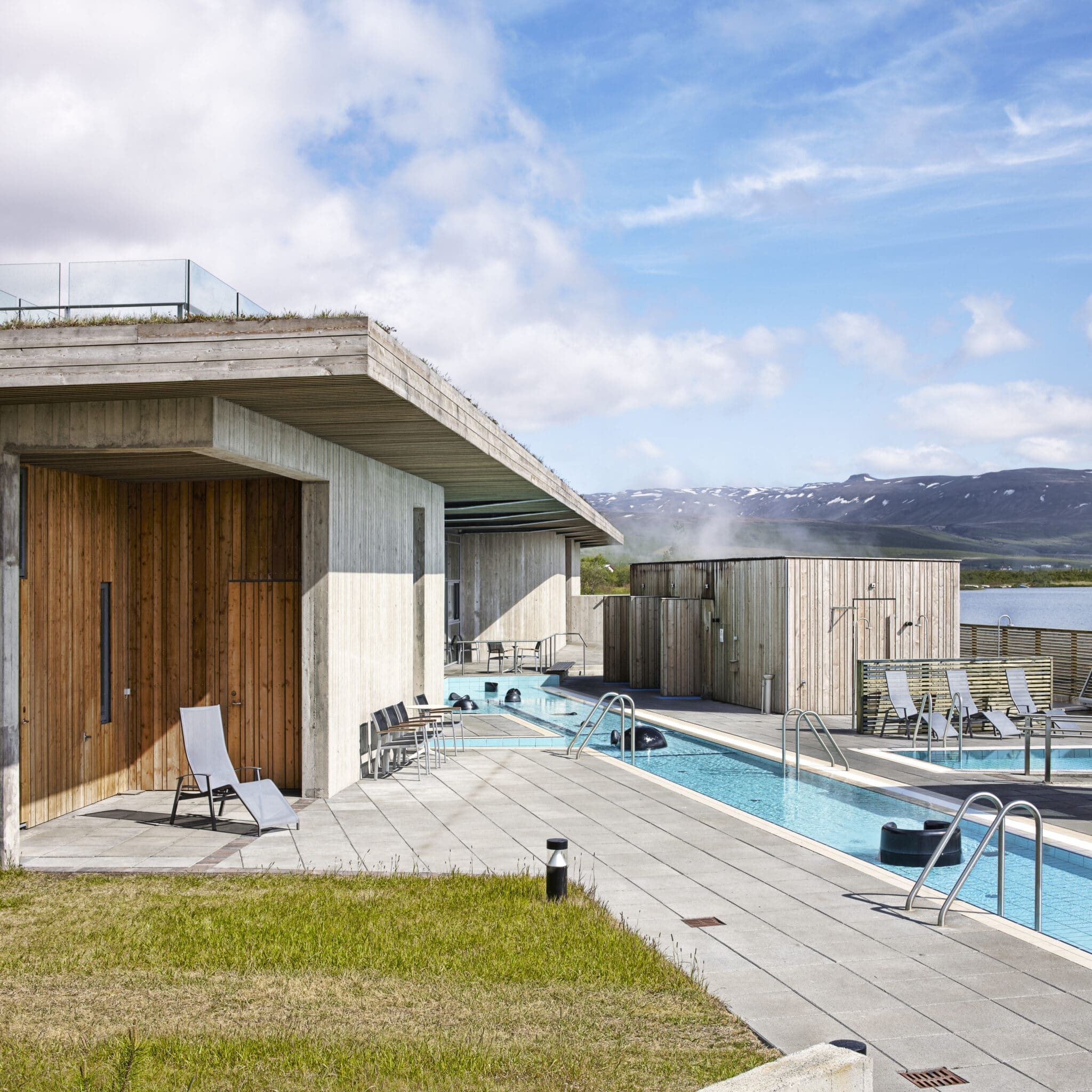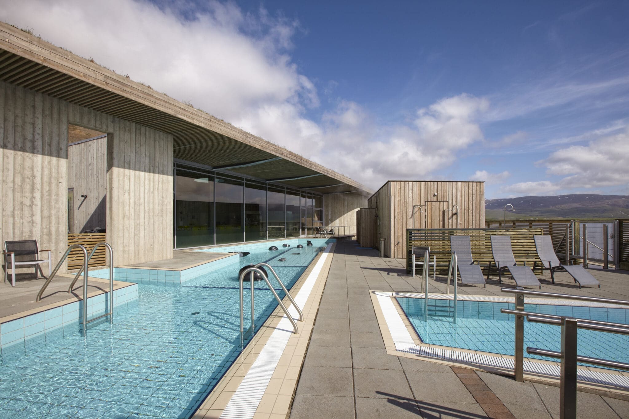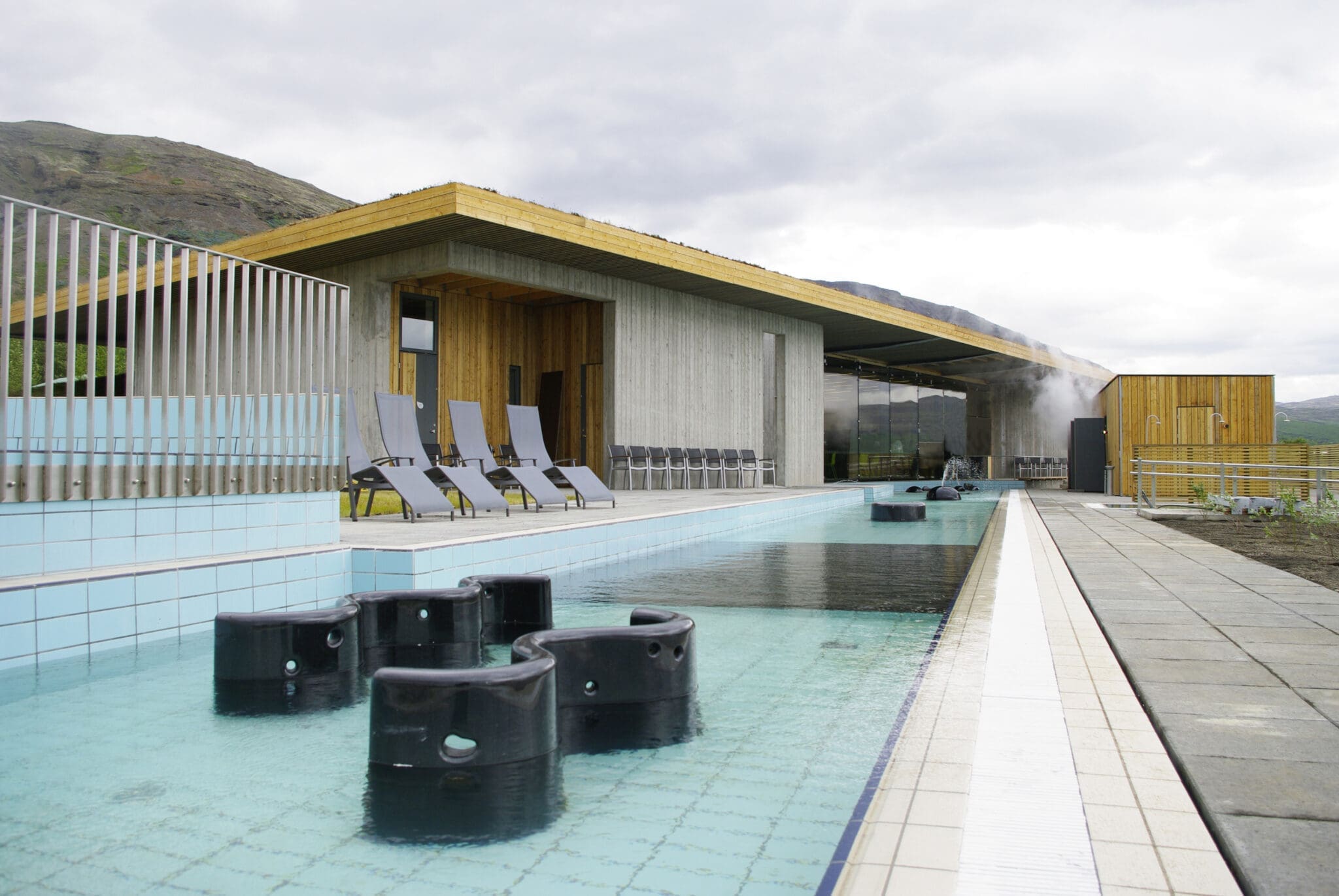This spa and geothermal swimming pool is built right on the shores of Laugarvatn at the source of a group of hot springs.