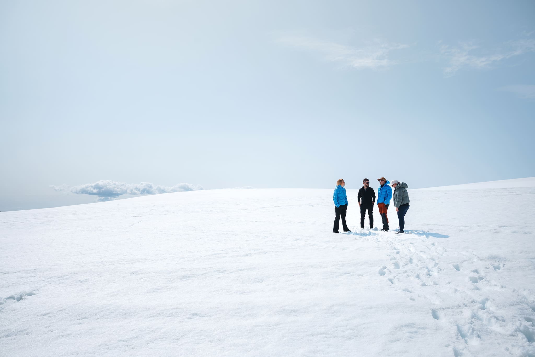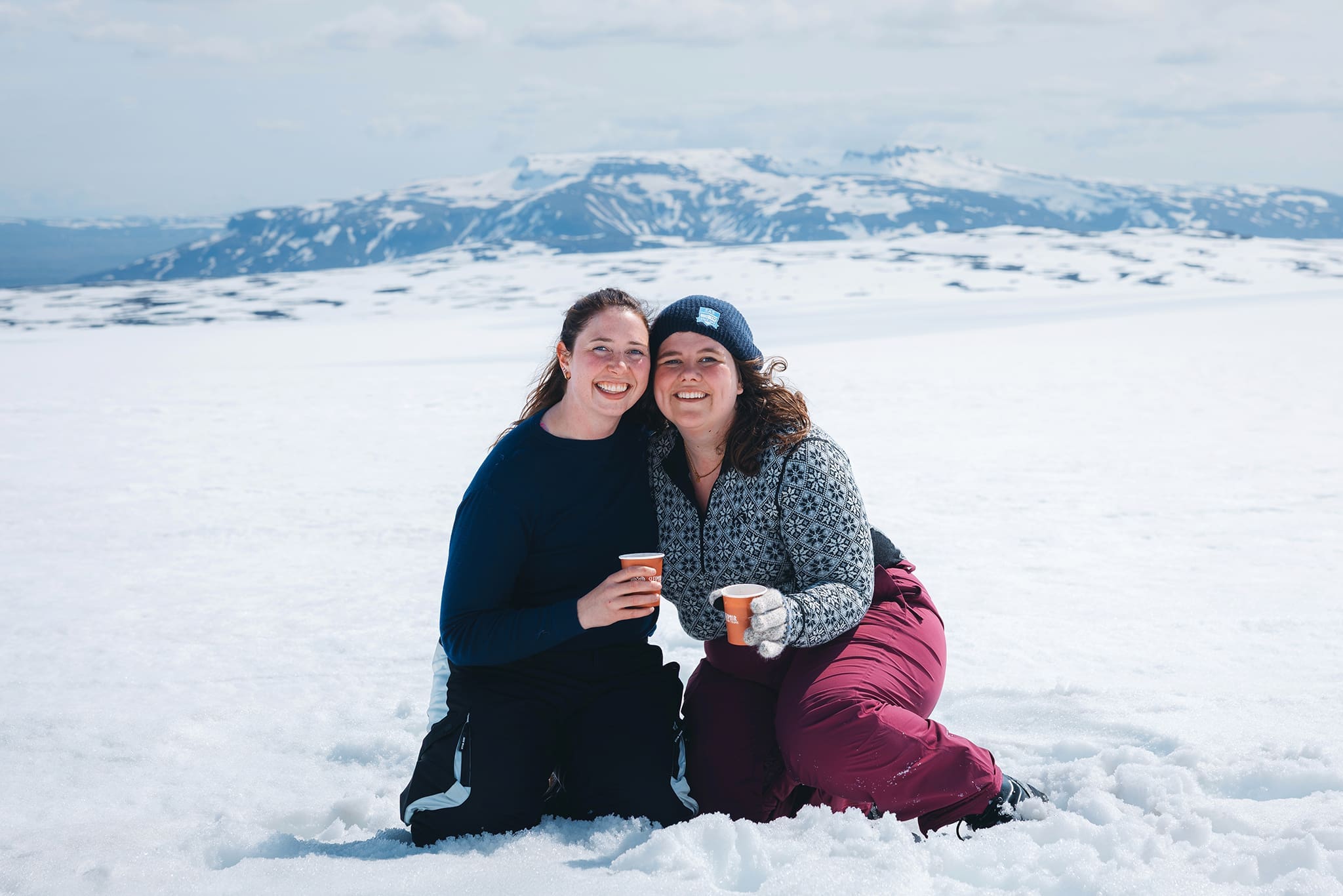 Fun on the Glacier: Enjoy the view of the Langjökull Glacier and soak up the atmosphere. Show off to your friends and play Glacier Golf and/or sled (depending on snow conditions) down the snowy hill for some fun! Taste the freshest water straight from the glacier and enjoy some hot cocoa and tea at our pop-up glacier café. Be sure to try the Jökla liqueur and the classic Icelandic pastry “Kleina”.