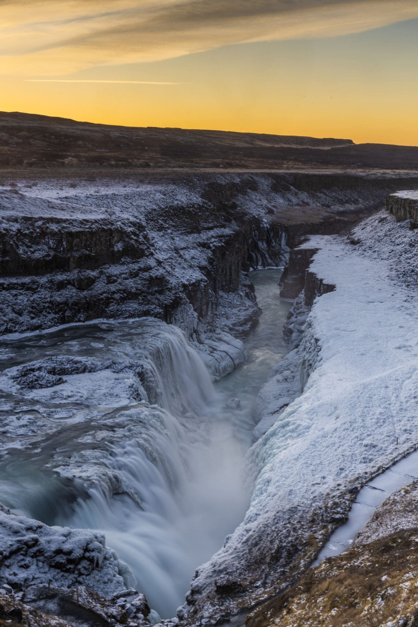 Your final stop is the awe-inspiring Gullfoss waterfall, often referred to as the "Golden Falls." Prepare to be mesmerized as the glacial waters of the Hvítá River cascade down two tiers, creating a spectacular display of raw power and beauty. Experiment with various angles and compositions to capture the essence of this magnificent waterfall.