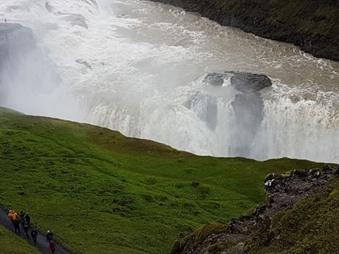 The water in the Hvítá river travels from the glacier Langjökull before cascading 32 meters (105 feet) down Gullfoss' two stages in a dramatic display of nature's raw power. This excellent site is seen by most visitors, as it is on our the Golden Circle sightseeing route.