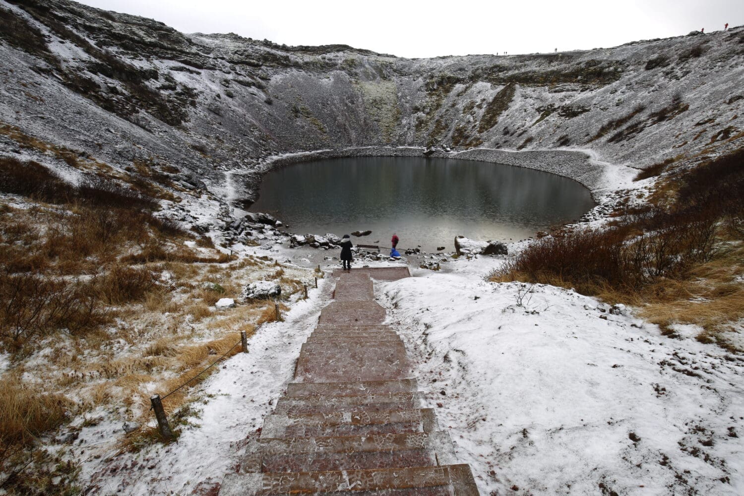 Now we will be traveling through fields, meadows and be crossing few glacial rivers until we stop at beautiful Kerið, a volcanic crater lake. You can have a walk around the ridges or even go down and touch the gleaming surface of the water.