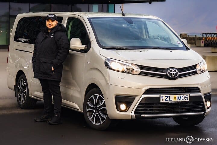 - We make pickup by any location of your accommodation in Reykjavik, or the nearest towns, ports, or KEF Airport. Please let us know where you want to have the pickup location. Driver will be waiting for you outside of your location on a comfortable Toyota Proace Verso. Please be ready 10 minutes before the pickup time.