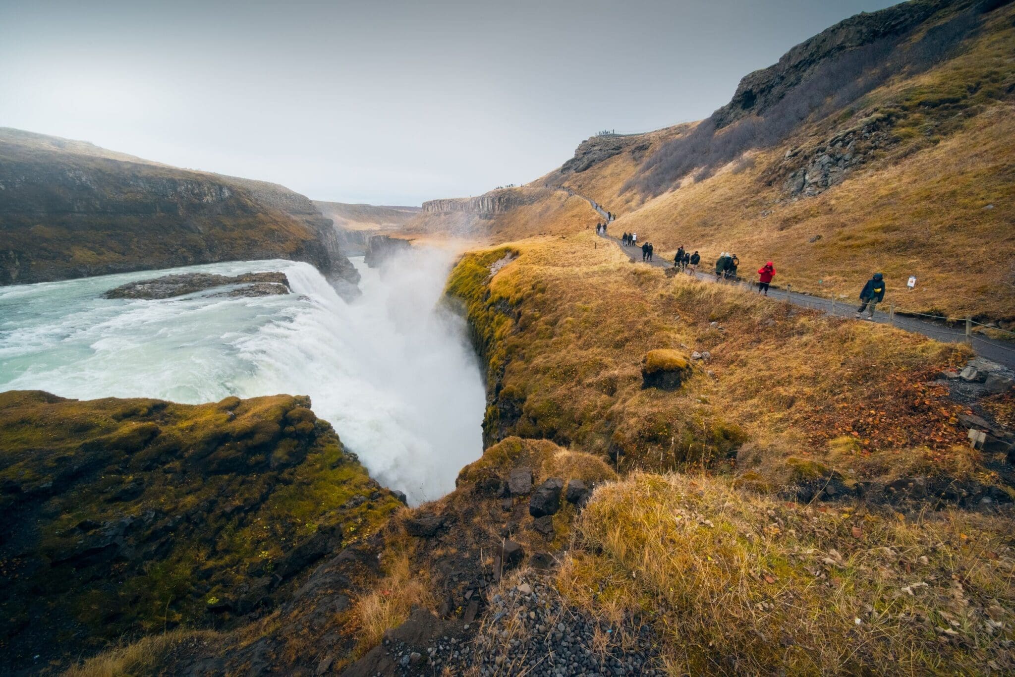 Gullfoss waterfall. “Lunch here” or the Golden waterfall.