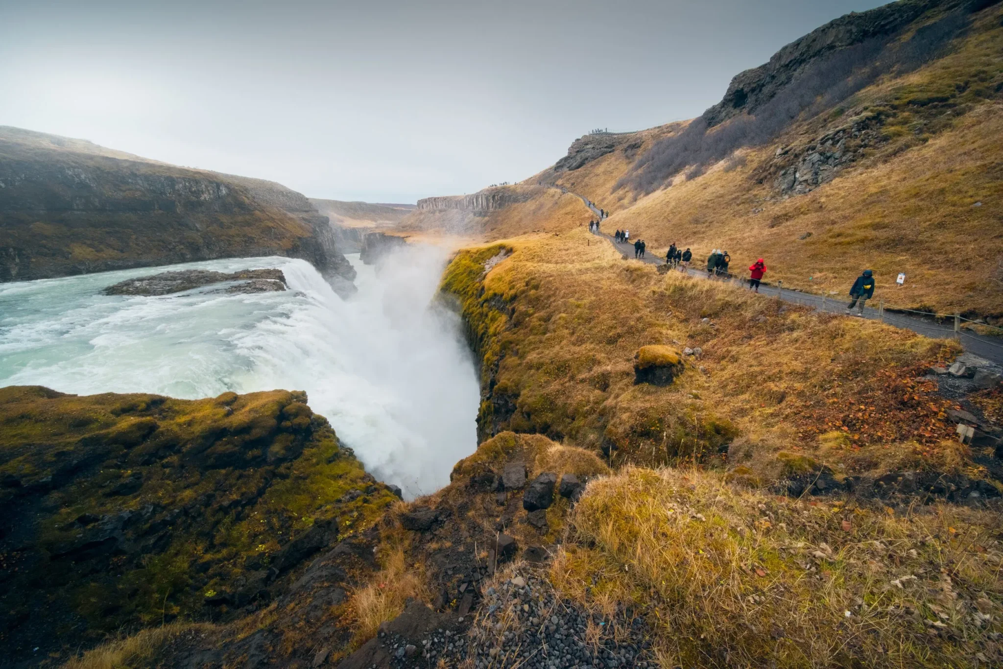 Next, it’s on to the famous Geysir geothermal area, where Strokkur erupts like clockwork, sending boiling water 25 meters into the air—perfect for that unforgettable photo! From there, we’ll make our way to Gullfoss, or the “Golden Waterfall.” This powerful, two-tiered cascade is a true force of nature, and you’ll feel its mist as you stand in awe. We’ll stop for a cozy lunch nearby to fuel up for the next part of our journey.