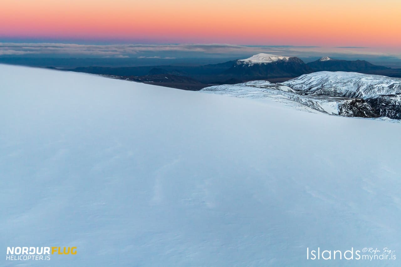 Soak in the sights of the ever so popular tour in style! Along our route you’ll get the best possible view of the continental plates of Europe and North America drifting apart at the UNESCO world heritage site, Þingvellir National Park. We fly past desolate black sands, lunar landscapes, the volcano Skjaldbreidur, the geothermal wonders of Geysir, the spectacular waterfall of Gullfoss and Hengill geothermal area. Then we crown this exceptional Golden Circle trip with a landing on the second biggest glacier in Iceland, Langjökull glacier! You’ll get a chance to walk on an ancient glacier, throw a snowball and get a photo of yourself on top of the world!