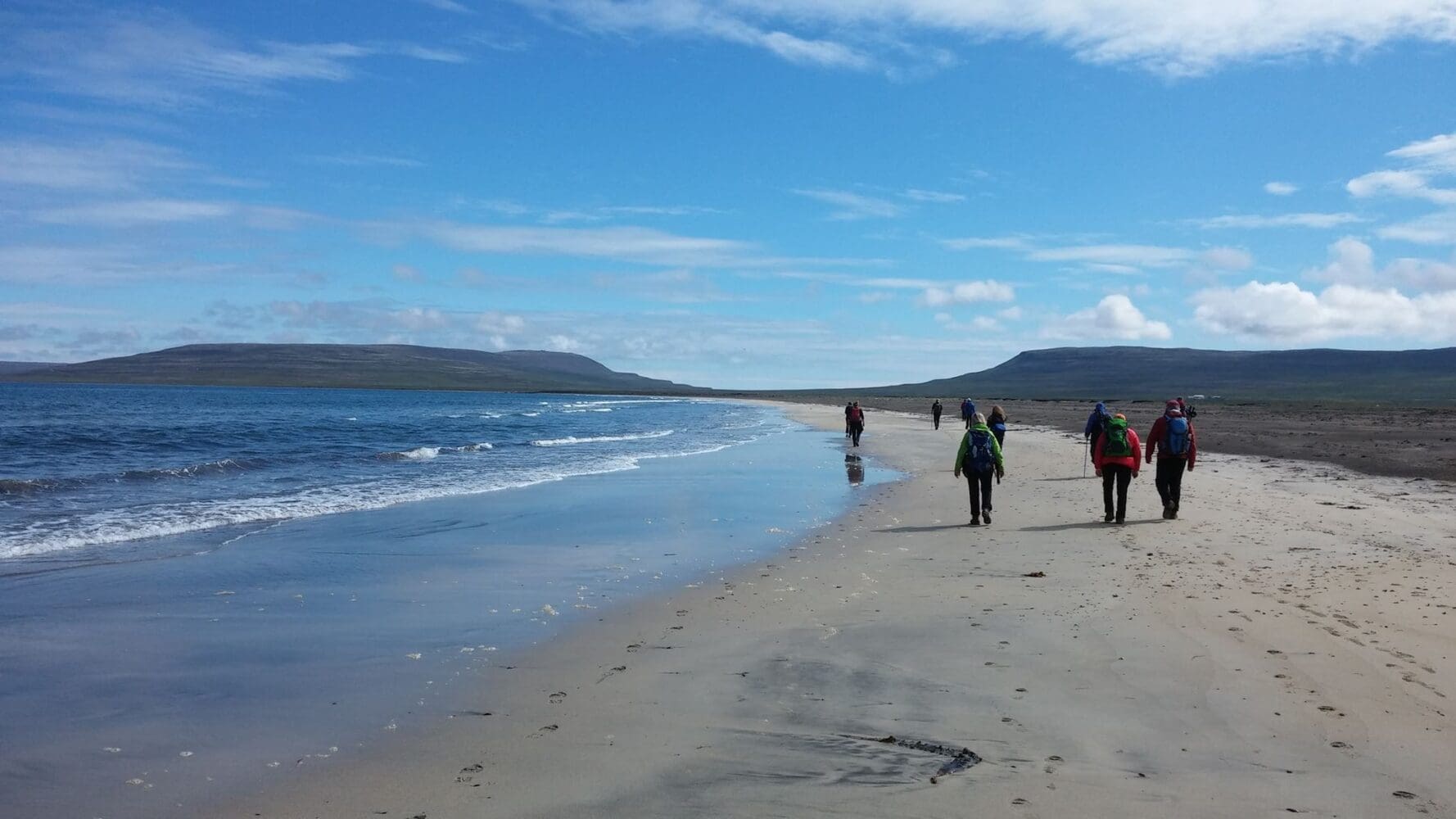 Hike along the beach from Lambanes to river Krossós, we’re hiking up the river and then turn back to Ytra Lón along Messumelur. Driftwood and beautiful beaches, full of life. (10 km)