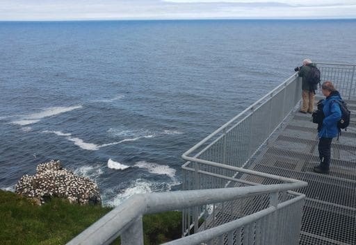 Then out to Skoruvíkurbjarg, which is buzzing with birds, here we see Icelands second-largest Northern Gannet colony in Stóra-Karl rock, thousands of Puffins, and the rarely spotted Brünnich Guillemot.