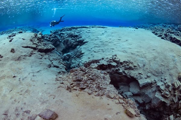 Your adventure begins with a scuba diving tour of Silfra. Silfra, the famous fissure between the Eurasian and North American tectonic plates, provides an underwater experience unlike anywhere else on earth.