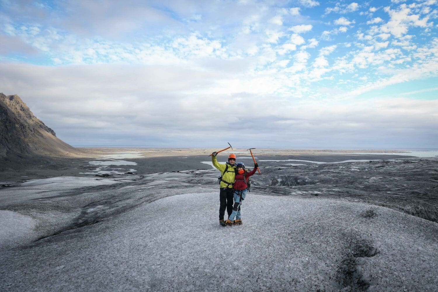 After an exciting day of ice climbing and exploration, you’ll hike back to the glacier parking area and enjoy a scenic 30-minute drive back to the Fosshotel Glacier Lagoon parking lot. As you bid farewell to your guide, you’ll leave with unforgettable memories and the thrill of having conquered the icy landscape of Falljökull Glacier.Don’t forget! Ice Pic Journeys offers a unique photo package. We are the only tour company in Iceland providing professionally edited photographs of your adventure. You will receive 5 stunning images delivered via Drive approximately 14 days after your tour.