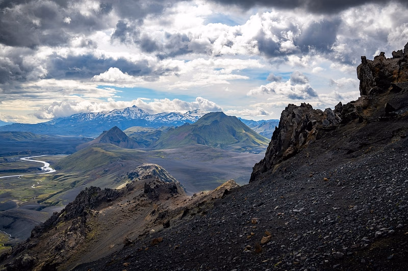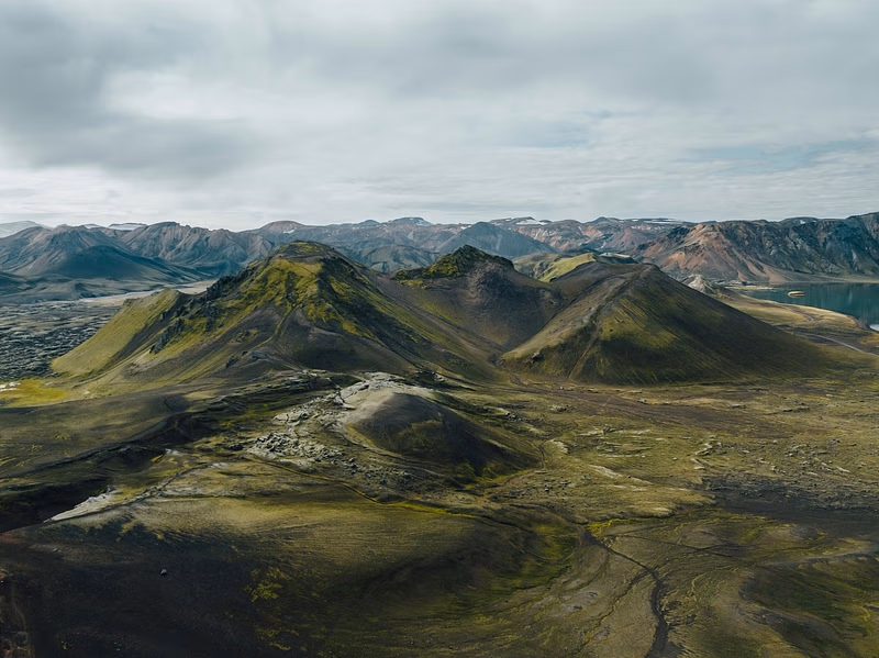 - Remote volcanic deserts, rhyolite hills, mossy peaks, and glacier views