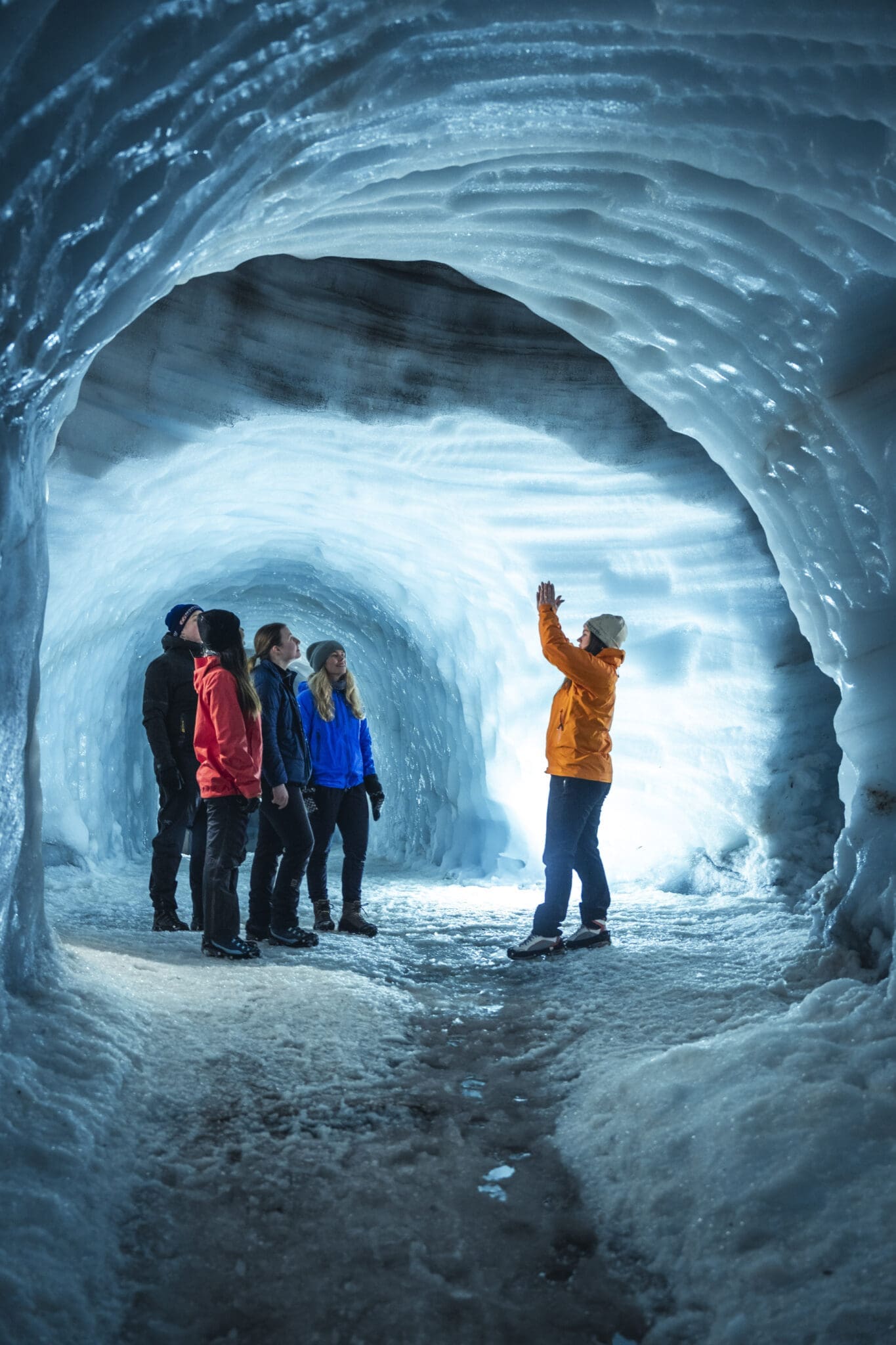 Next up is the glacier activity. You will go on the specially modified glacier vehicles up to the ice tunnel where you will explore for approx. an hour before making your trip back to Reykjavík.