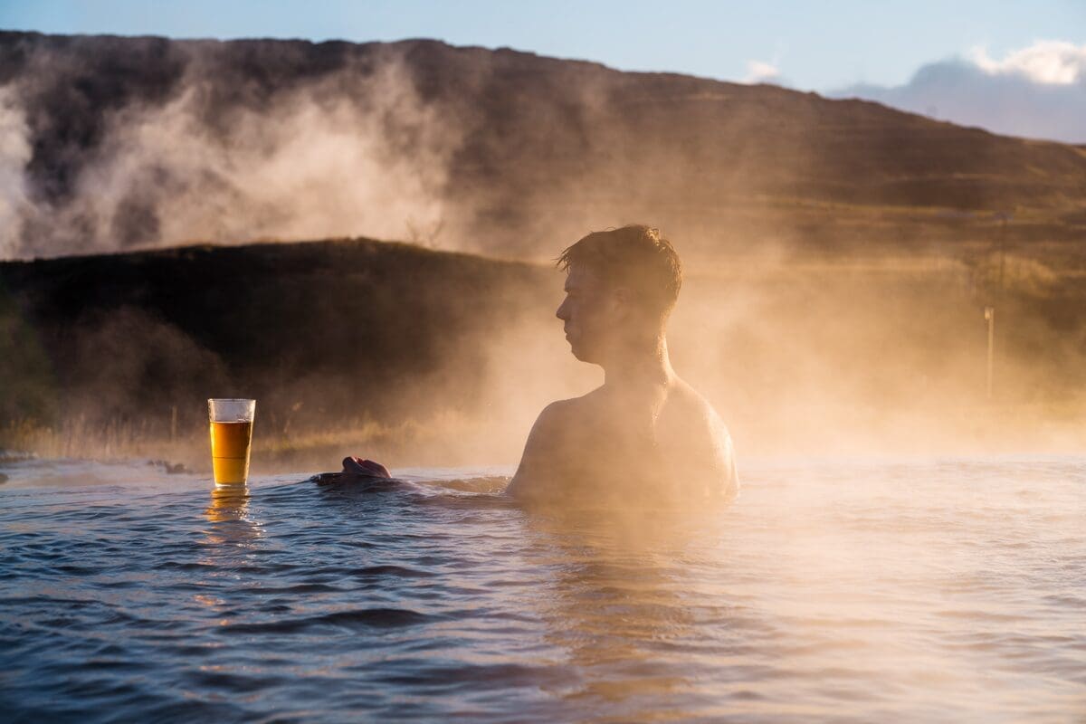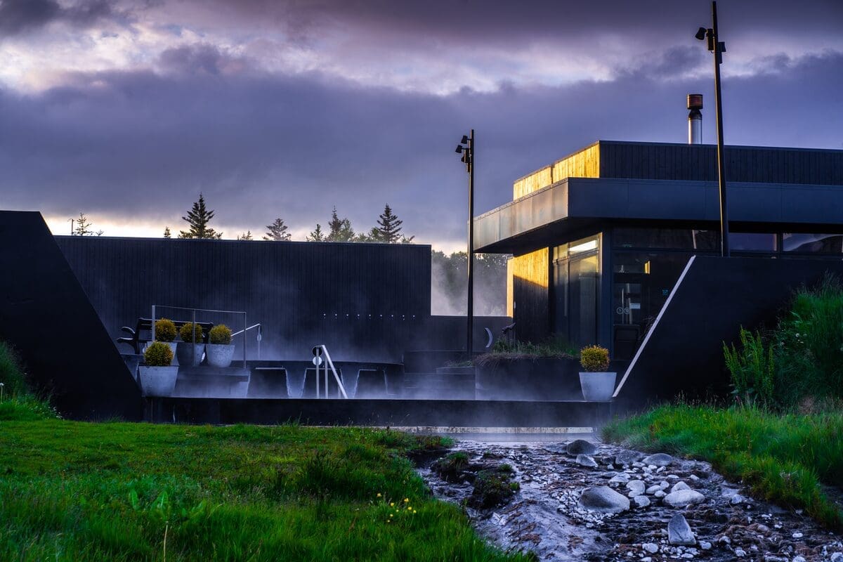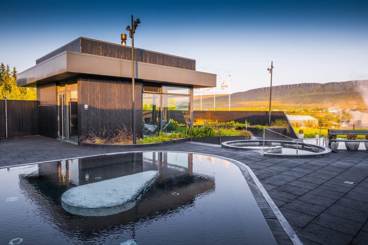 Walk through the spacious blue corridors, step into the built-in chapel, and learn about the glacier’s history. After exploring the world’s largest ice tunnel, let the geothermal waters of Krauma gently warm your body and ease your mind. Slip into the hot tubs, relax in the saunas, or rest in the quiet lounge while taking in the volcanic landscape around you.