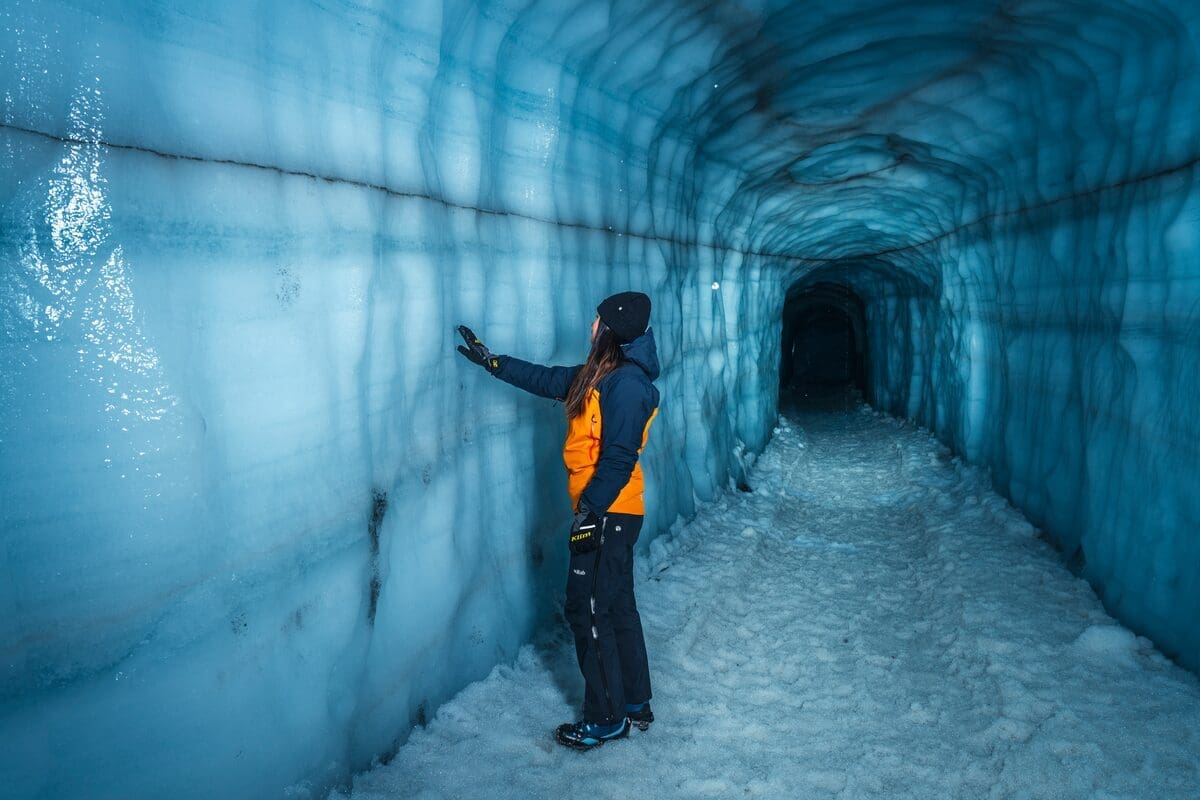 Experience Iceland’s natural contrasts in one day with an icy Into the Glacier adventure inside Langjökull and a hot spring soak at Krauma geothermal spa.