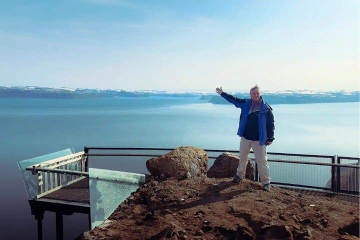 • Rising 638 meters above sea level, Bolafjall Mountain offers one of the most breathtaking views in the Westfjords. Weather permitting, we’ll drive up the steep, paved road to the summit, where a dramatic skywalk platform extends over the cliff edge. From here, take in panoramic views of the North Atlantic, nearby fjords, and even the Hornstrandir Nature Reserve on clear days. It’s a high point of the tour—literally and visually.