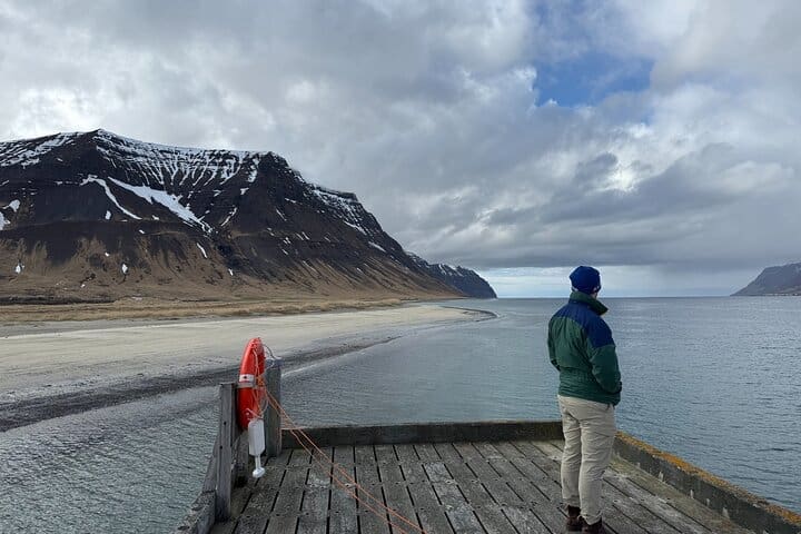 • Just a short drive from Ísafjörður through a scenic mountain tunnel lies Bolungarvík, one of Iceland’s northernmost fishing villages. Here, we visit the Ósvör Maritime Museum, a full-scale replica of a 19th-century fishing outpost. With turf-roofed huts, drying racks, and traditional rowboats, this open-air museum offers a vivid glimpse into the harsh but resilient life of early Icelandic fishermen. The ocean views and coastal cliffs add a dramatic backdrop to this step back in time.