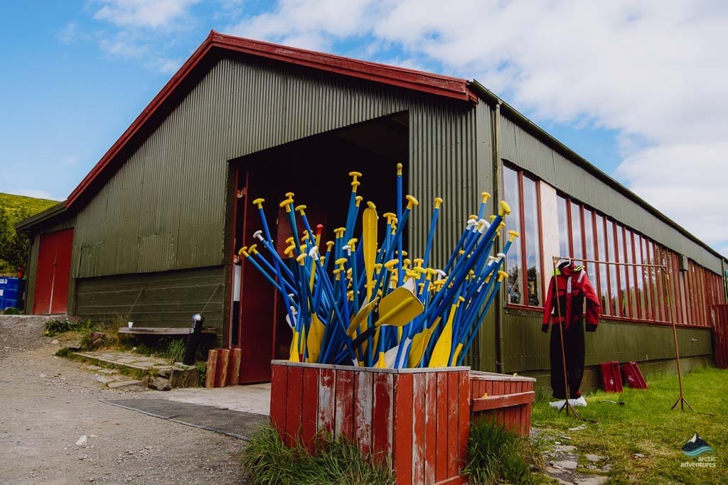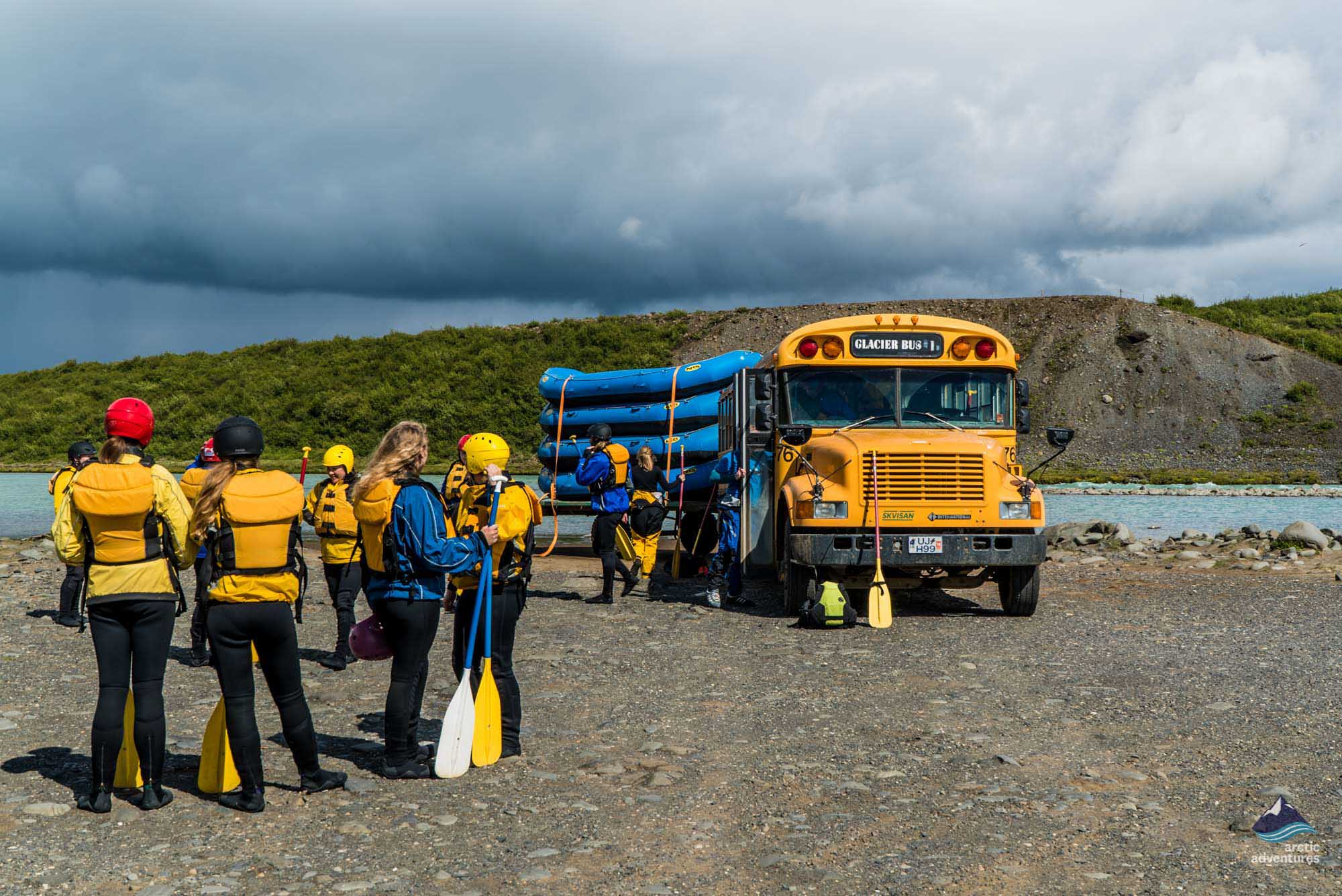 Drumboddsstaðir or “Drumbó” is the name of our rafting base in South Iceland, situated 10 minutes away from Geysir and Gullfoss area and only an hour drive from Reykjavík. From here you will start and end your rafting adventure on the Hvítá River. On arrival the guides will give you a wetsuit and a splash top to wear on the river and once you have dressed up you will jump on a bus towards the river put-in. After the rafting you will come back to the raft base where you will have the option to use the showers and the sauna. If booked in advance you can also enjoy a lunch buffet or a BBQ dinner!