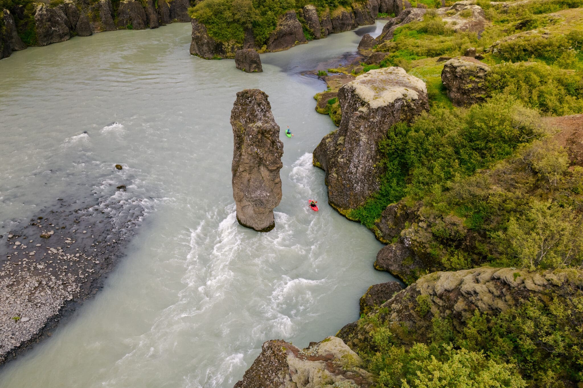 Hvítá river originates from Langjökull glacier, the second largest glacier in Iceland. We begin our journey a few kilometres downstream from Gullfoss Waterfall and travel down 7 kilometres. On route we experience a beautiful view that can only be seen from a boat. The first few kilometres are filled with whitewater rapids and action and the latter kilometres feature serene beautiful canyons. You will sail by Brúarhlöð, a stunning canyon.