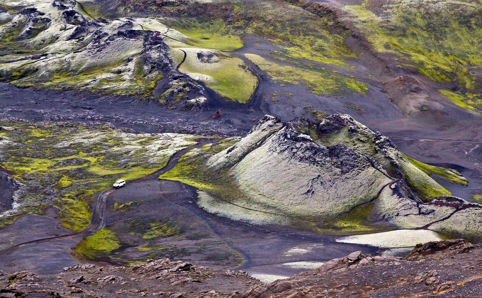 Lakagigar volcano and lava tour is a guided super jeep tour that takes you through rough mountain terrain around Iceland’s most famous volcanic craters that erupted in 1783-4, resulting in the largest lava flow in a single eruption in recorded history.