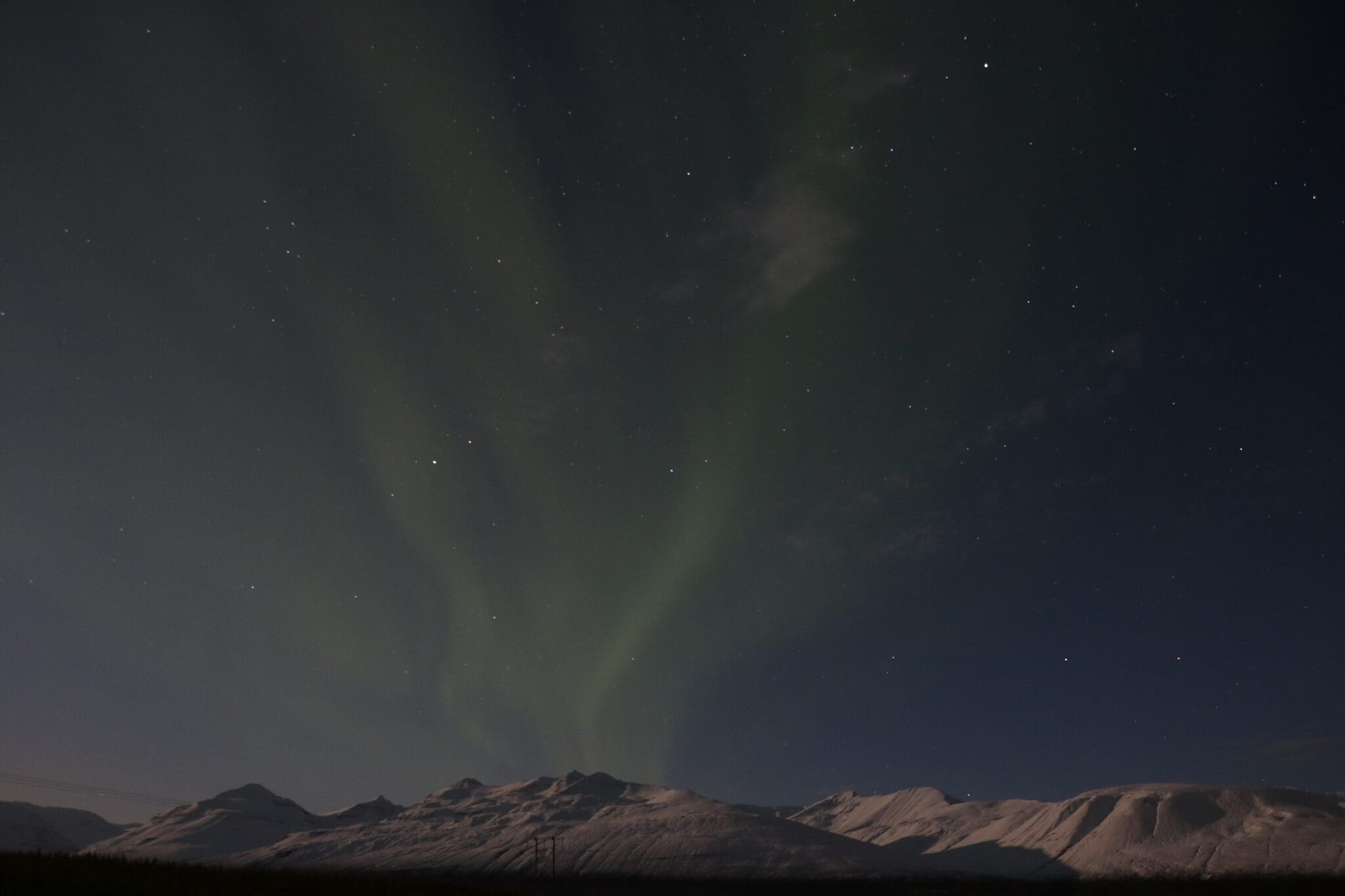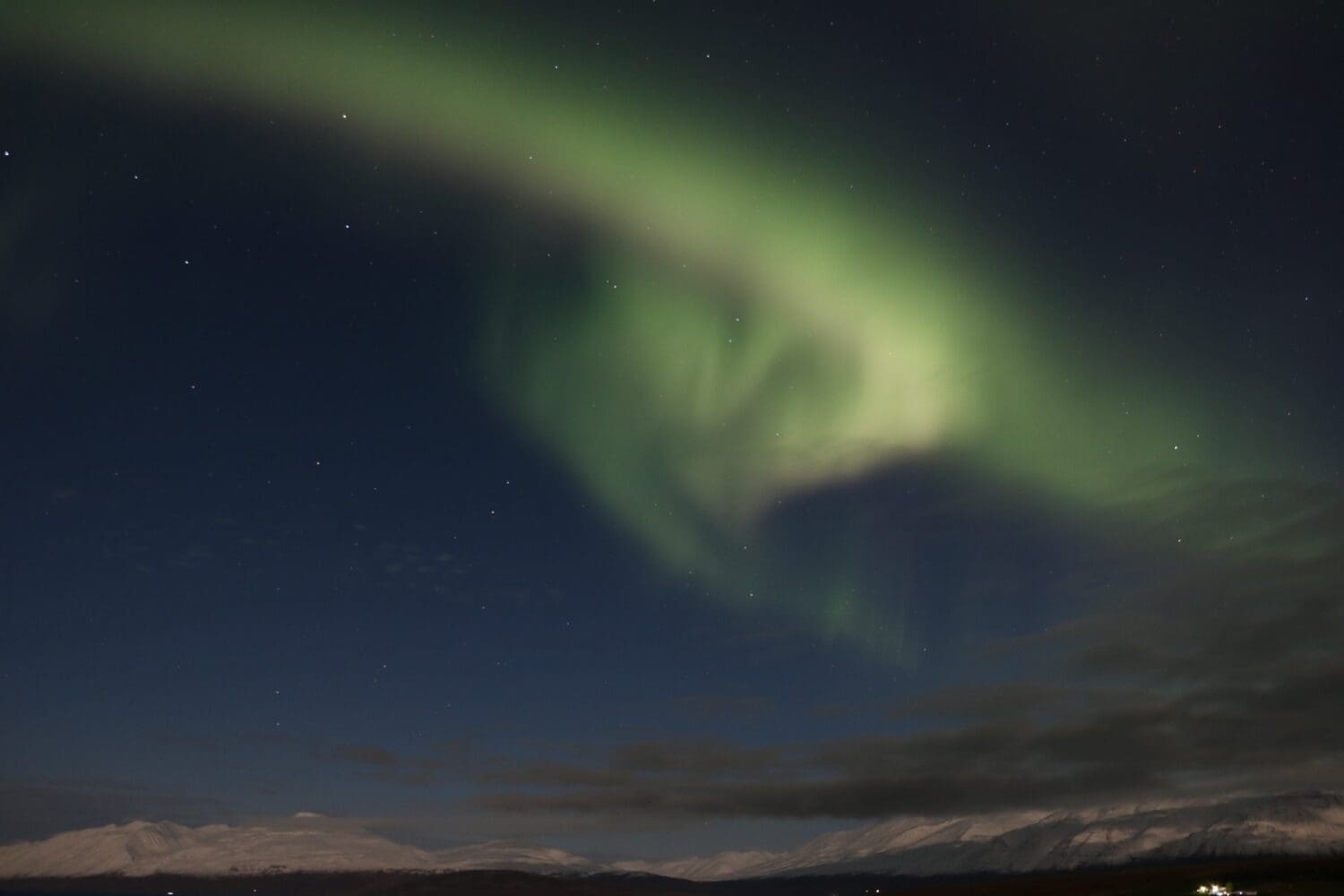 Escape the light pollution of the city and go with us outside Akureyri to see the amazing Northern lights. The Northern Lights viewings for this winter are looking very promising and there are few better places to see them than in the north of Iceland.