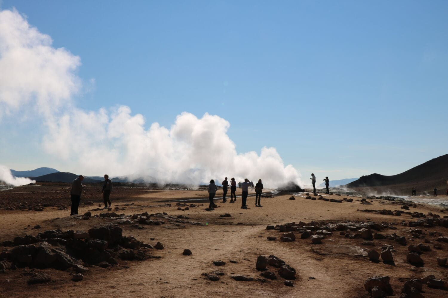 We take a look at Grjótagjá cave and a stop at the hot spring area at Hverarönd in Námaskarð and in the Nature baths where you get the chance to relax in the steam baths and bathe in the geothermal water you can also take a massage in the baths.